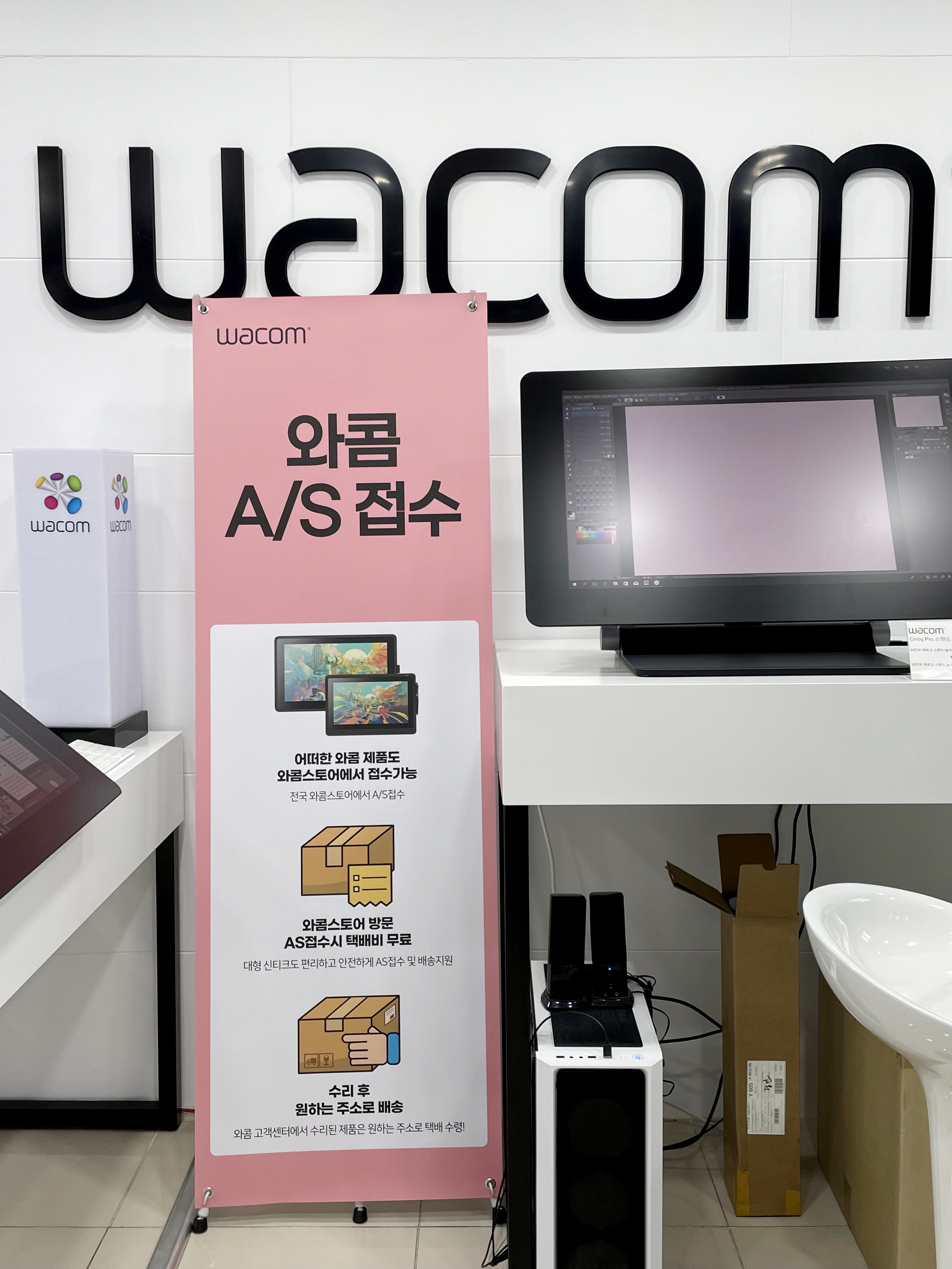 부산광복점의 가장 큰 특징은 와콤 A/S 방문 접수가 가능한 매장이라는 점입니다. 모델 상관없이 와콤 타블렛 수리가 필요하다면 부산광복점으로 타블렛을 가지고 와서 A/S 접수를 할 수 있습니다. 접수된 제품은 와콤 서비스센터로 입고되어 수리가 진행되고, 이후 원하는 주소로 배송받거나 부산광복점에서 다시 픽업할 수 있어요. 크기가 큰 액정타블렛도 모두 OK! 편하게 A/S 신청해보세요.