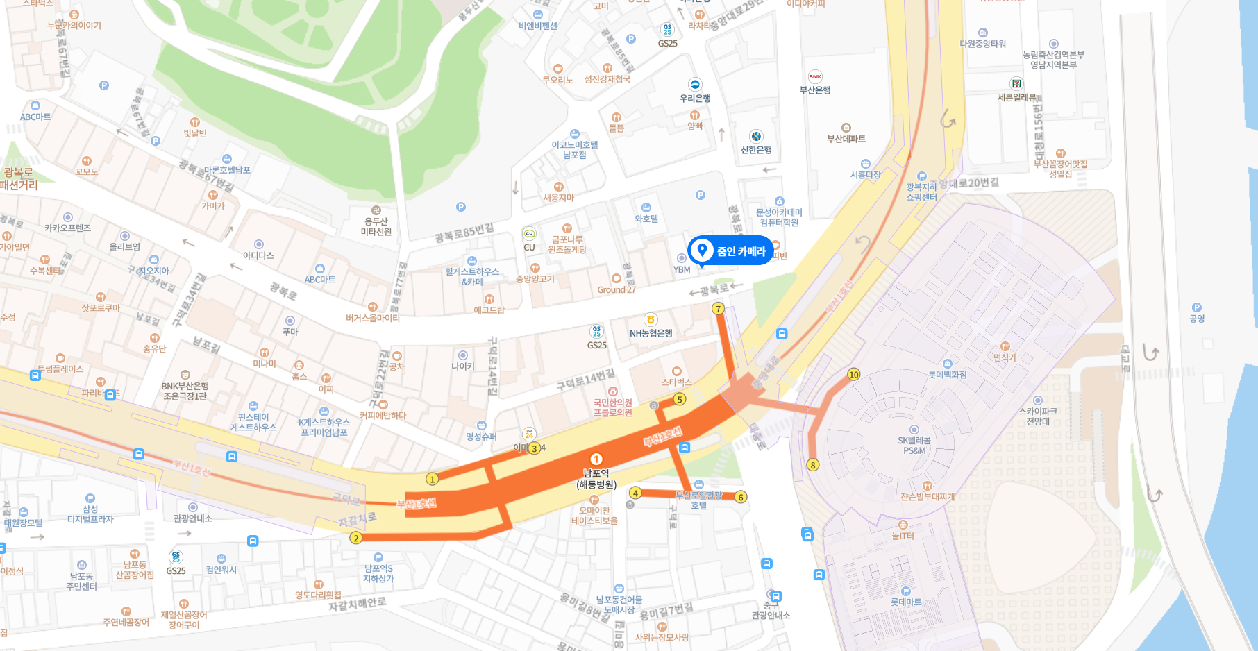 * 주소 : 부산시 중구 광복로 95-1 2층 (부산 남포역 7번 출구 인근)