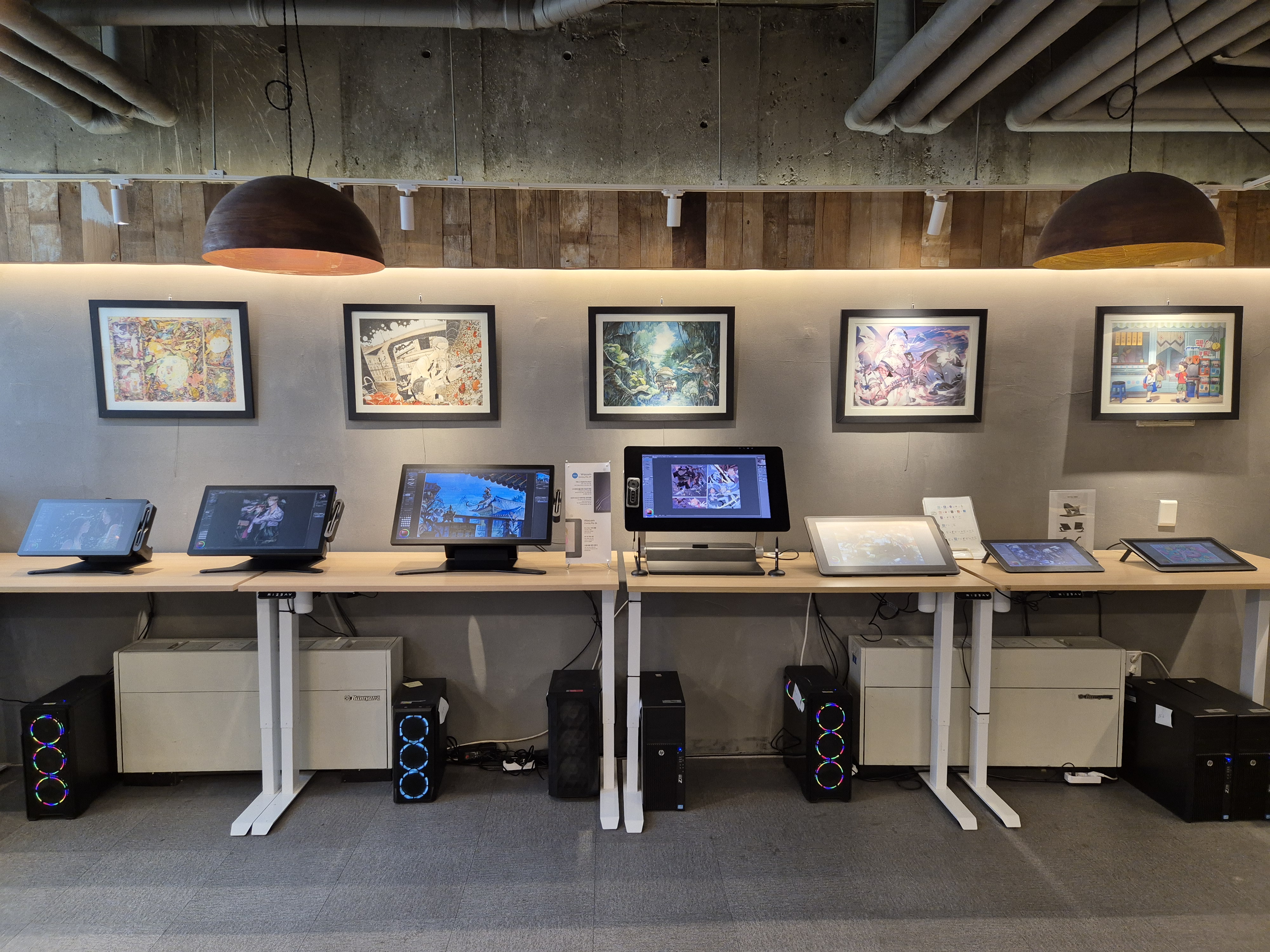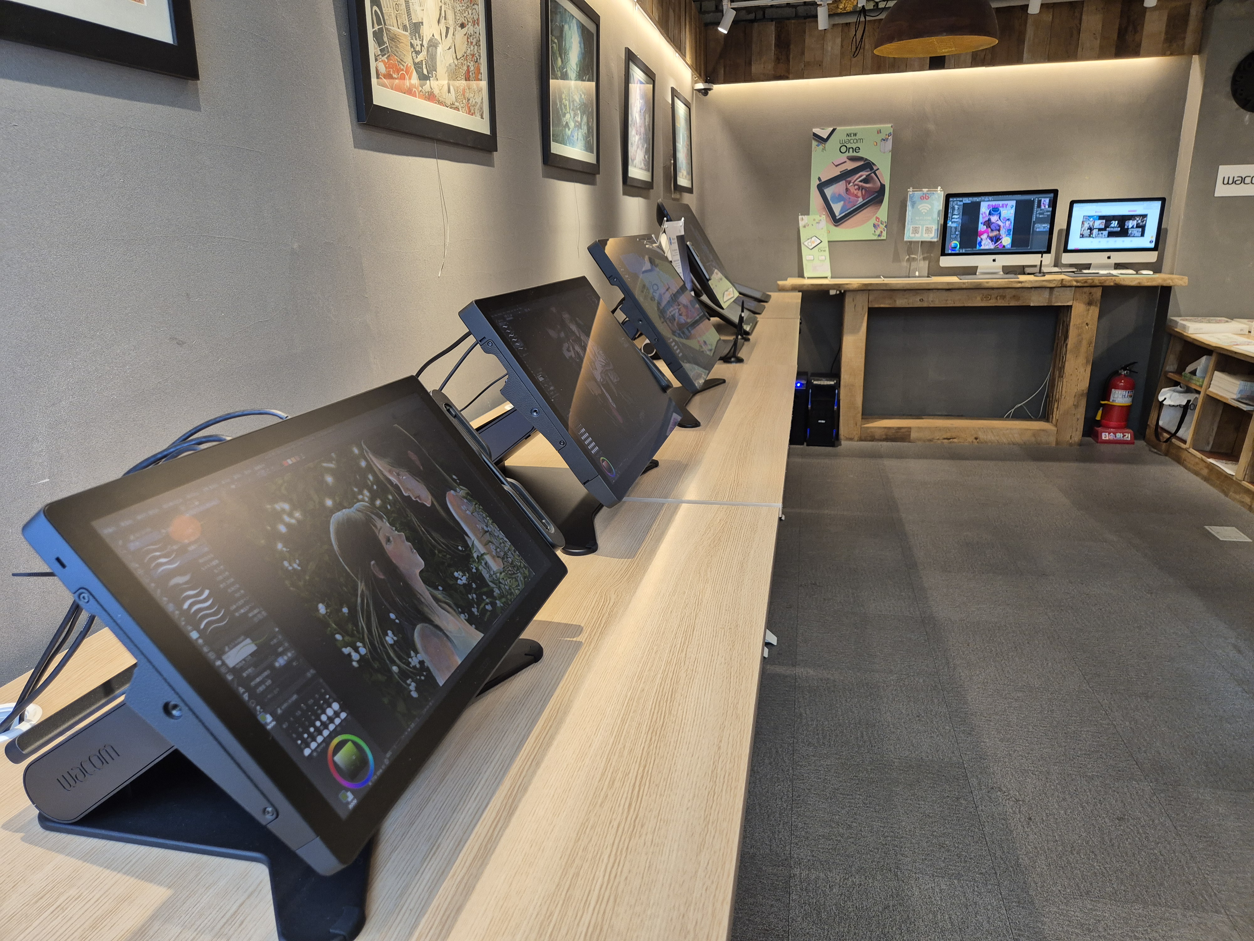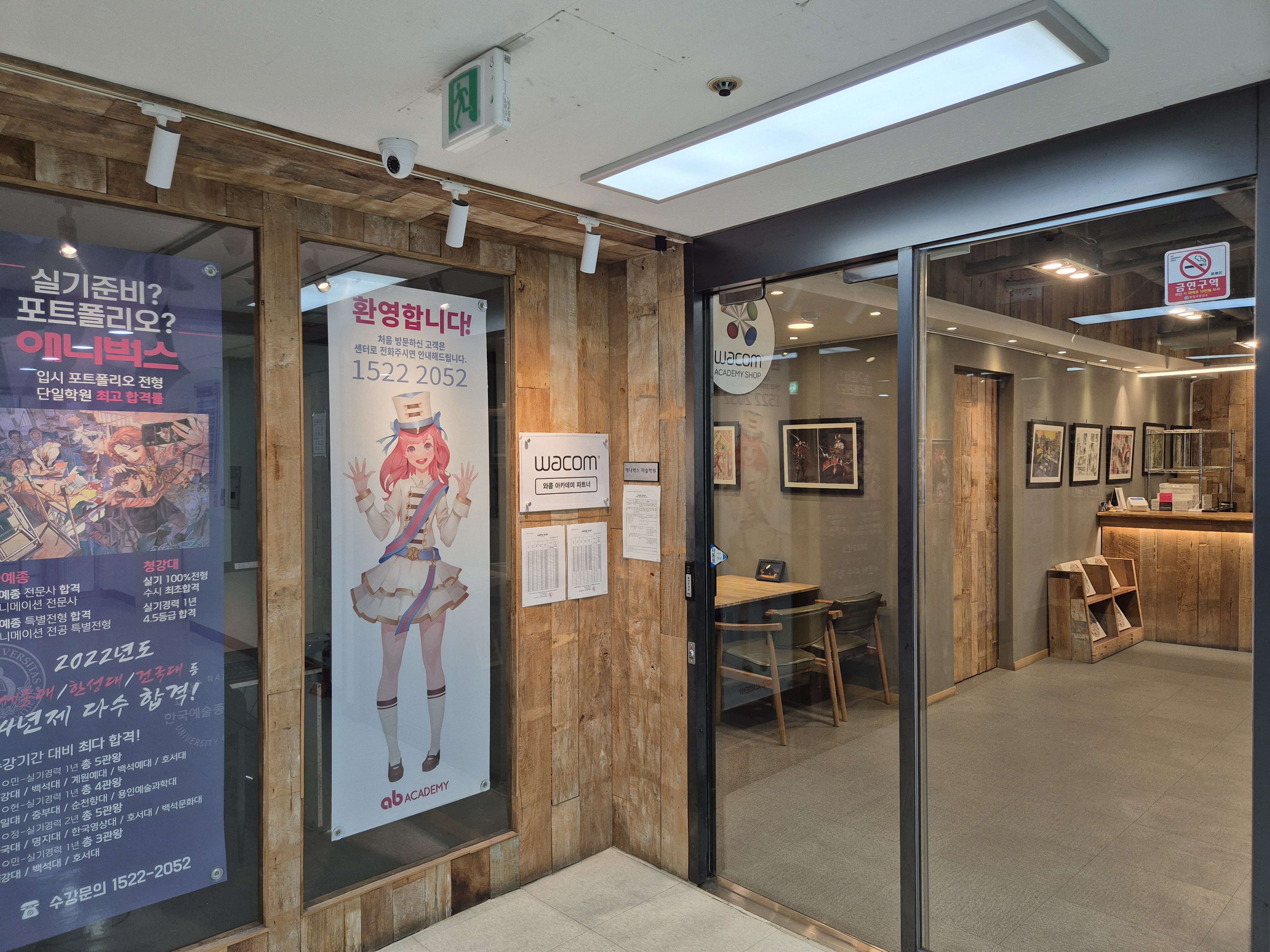 - 와콤 스토어 분당점은 만화 애니 입시 학원인 애니벅스와 웹툰 전문 학원 AB웹툰아카데미와의 협력으로 운영됩니다.