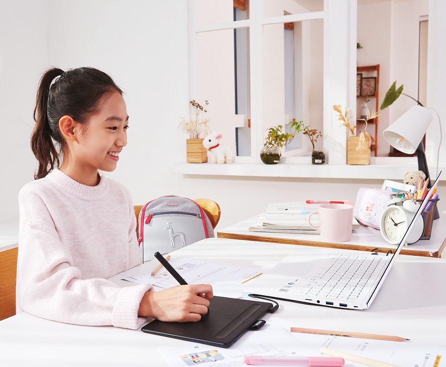 실제 펜을 사용하듯 빠르고 자연스러운 필기와 사용감을 갖추면서 내구성이 좋고, 복잡한 기능 없이 펜 타블렛의 핵심 기능만 알차게 담아 아이들이 사용하기에도 좋은 실속형 제품이죠. 정확한 펜 터치로 정밀한 작업도 가능해 아이들이 자신의 생각과 감성을 표현하기에도 적합합니다.