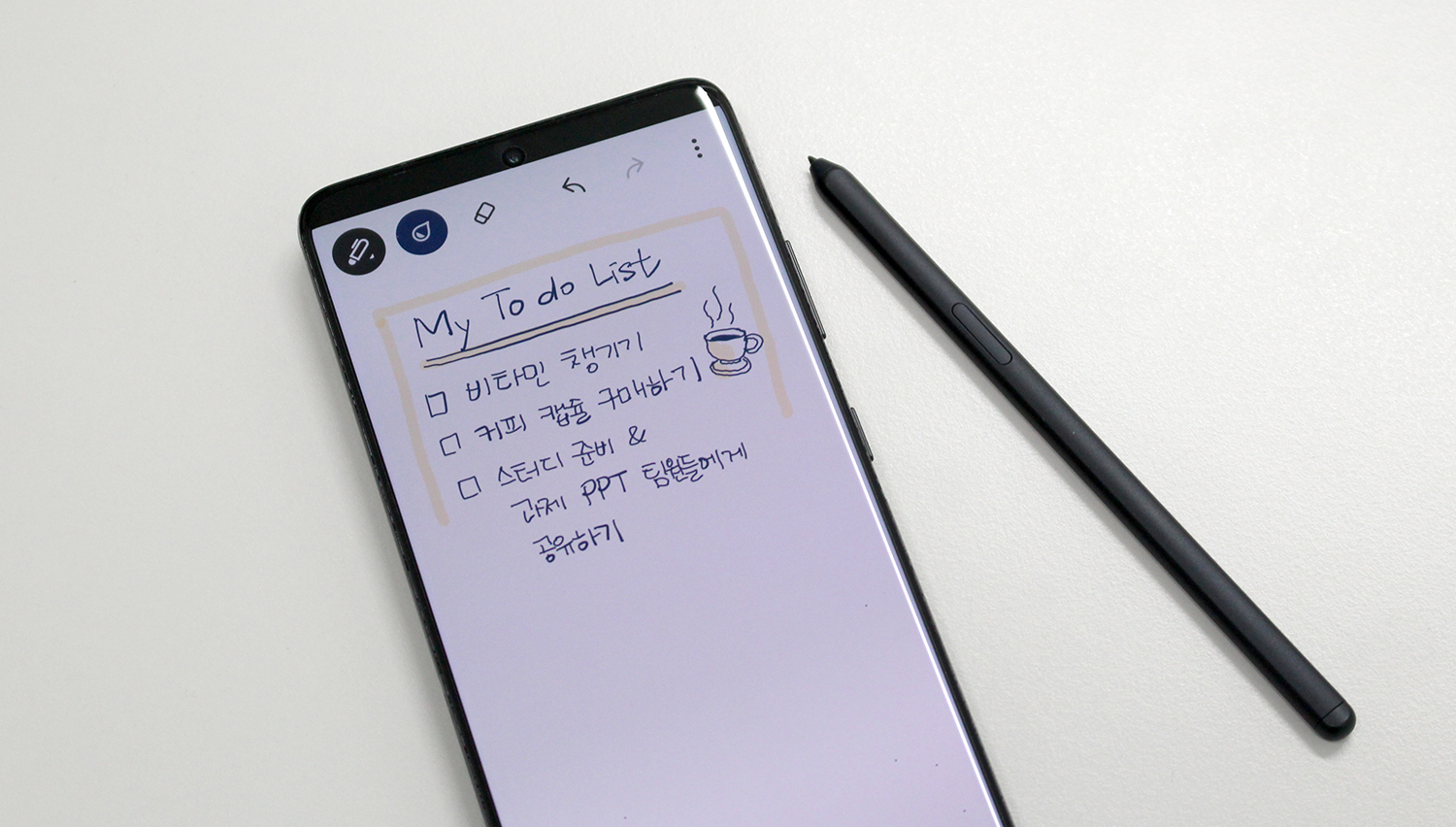 언제든지 갤럭시S21 울트라에서 빠르게 메모하고, 손쉽고 세밀하게 스케치하고 그려서 저장할 수 있습니다.