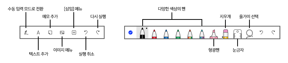 또한 다양한 색상과 종류의 펜으로 직접 글씨를 쓰거나, 키보드를 이용해 텍스트를 추가할 수 있고, 메모, 이미지, PDF파일, 워드 파일, PPT 파일 등도 자유롭게 추가할 수 있습니다. 물론 이렇게 추가한 문서 위에도 주석을 달거나 메모를 할 수 있고, 형광펜, 지우개, 눈금자, 올가미 툴을 이용해 편집도 가능합니다.