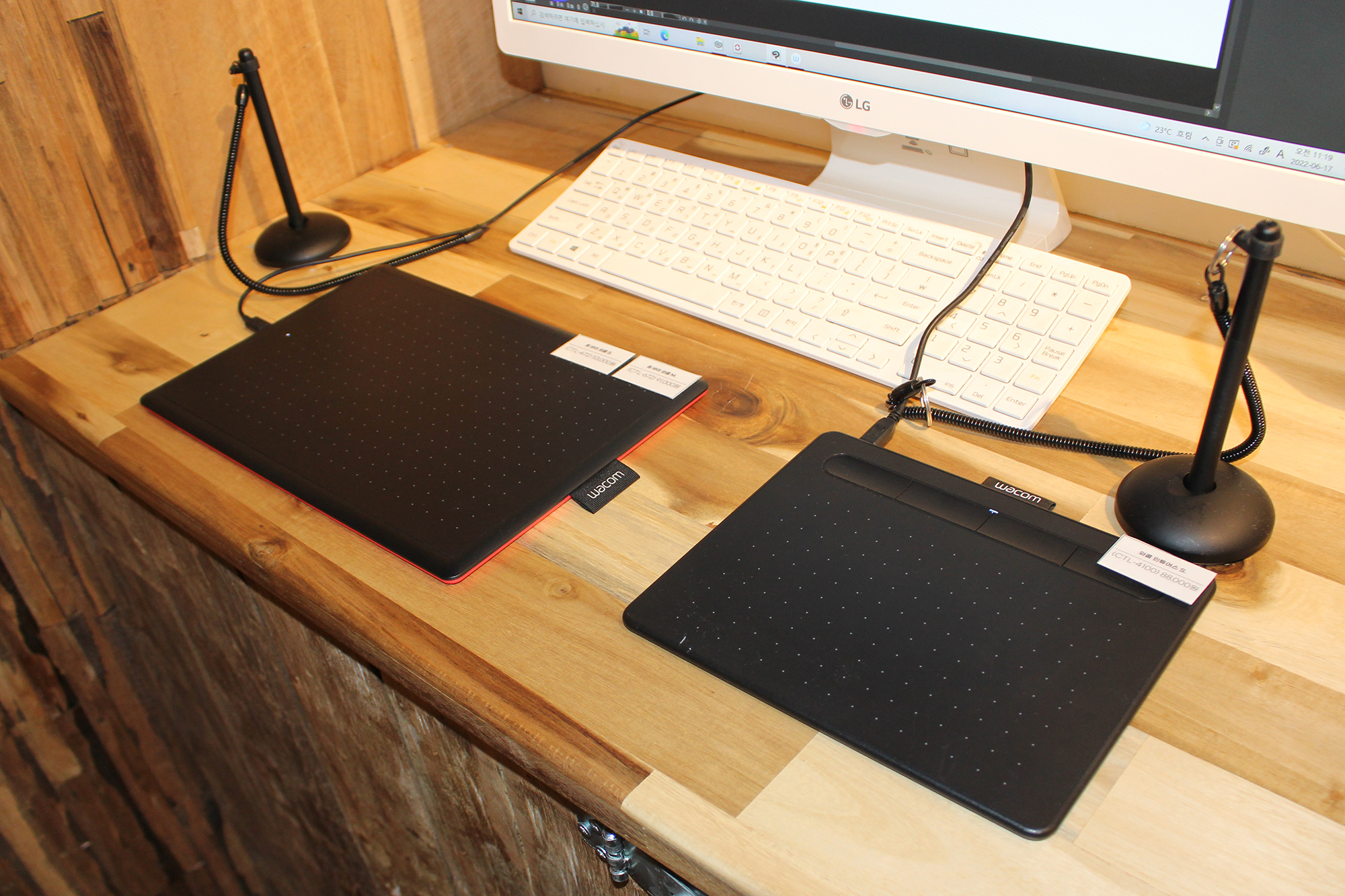 와콤 펜 타블렛부터 액정 타블렛까지 크기별로 모두 체험해볼 수 있어 나에게 어떤 타블렛 종류가 맞을지, 어떤 크기의 제품이 적당할지 등등 미리 비교하고 확인해볼 수 있다는 장점이 있습니다. 액정 타블렛은 화면 위에 바로 사용할 수 있어 적응이 쉬운 반면, 펜 타블렛은 눈으로 화면을 보며, 손만 타블렛 위에 두고 사용해야 하기에 초보자가 쉽게 적응하기 어려울 수 있는데요, 처음 타블렛을 사용해보시는 분이라면 직접 사용해보고 선택하는 것을 추천합니다.