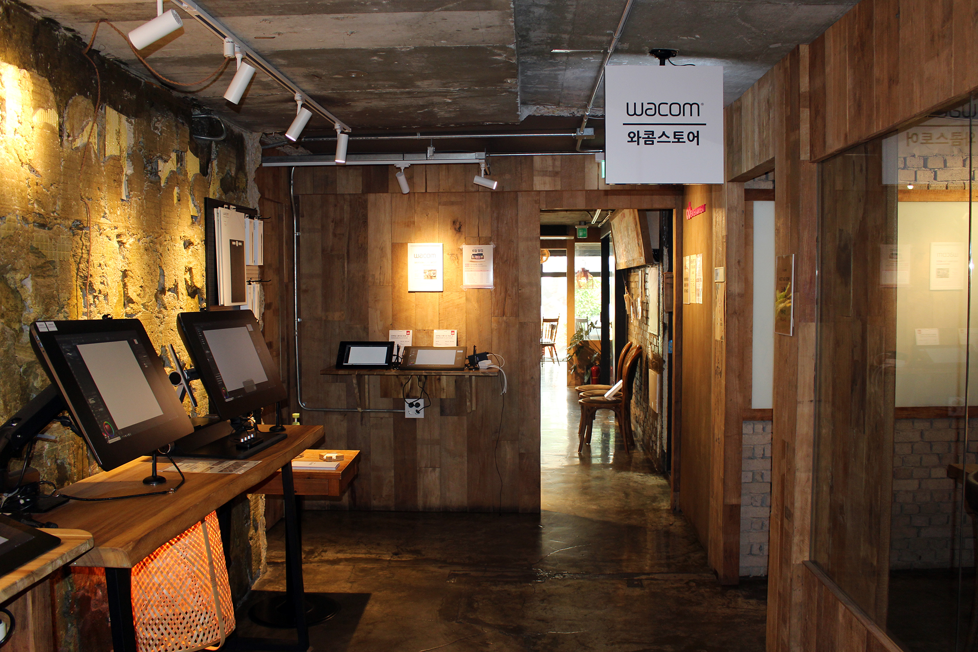 와콤스토어 강남점에 입장하면 타블렛을 체험할 수 있는 데모존과 앉아서 대화를 나눌 수 있는 편안한 의자와 테이블이 보입니다. 저 안쪽에는 와콤스토어 강남점만의 특별 공간이 있으니, 게시물을 끝까지 읽어주세요 :)
