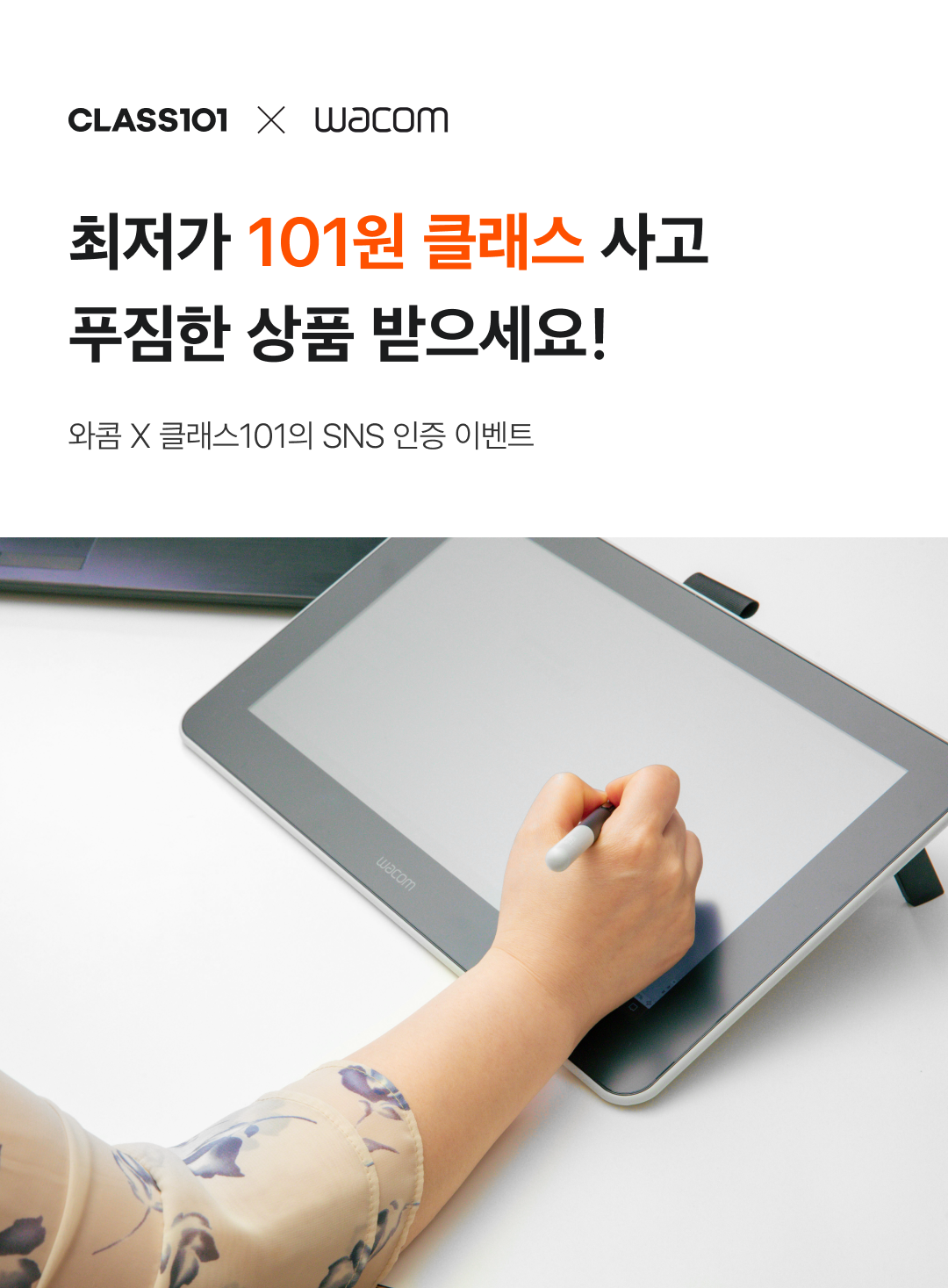101원으로 수강할 수 있는 와콤 클래스로 언택트 경쟁력도 높이고 선물도 받을 수 있는 좋은 기회를 놓치지 마세요 :)