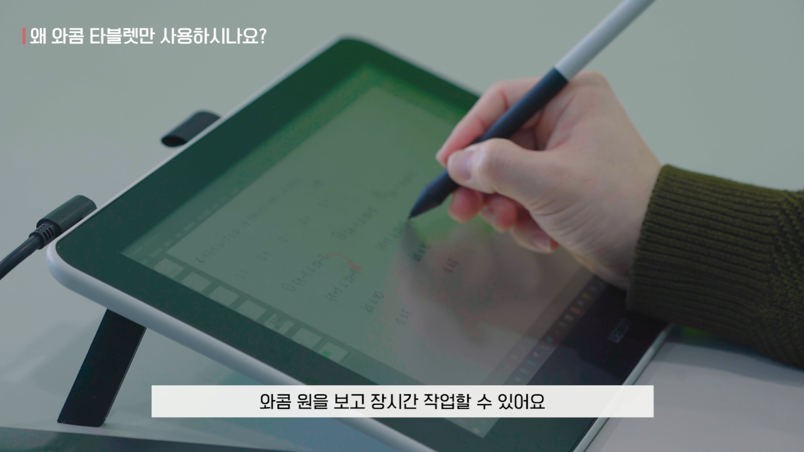 이상열 대표님은 와콤 타블렛을 주로 사용하시는데요. 타사 제품과 비교했을 때 가장 큰 차이점은 내구성이라고 합니다. 오랫 동안 사용해도 펜촉이 흔들리지 않는 내구성과 오류가 적은 드라이버 등은 사용자 편의성을 높여주는 와콤 타블렛만의 포인트입니다.