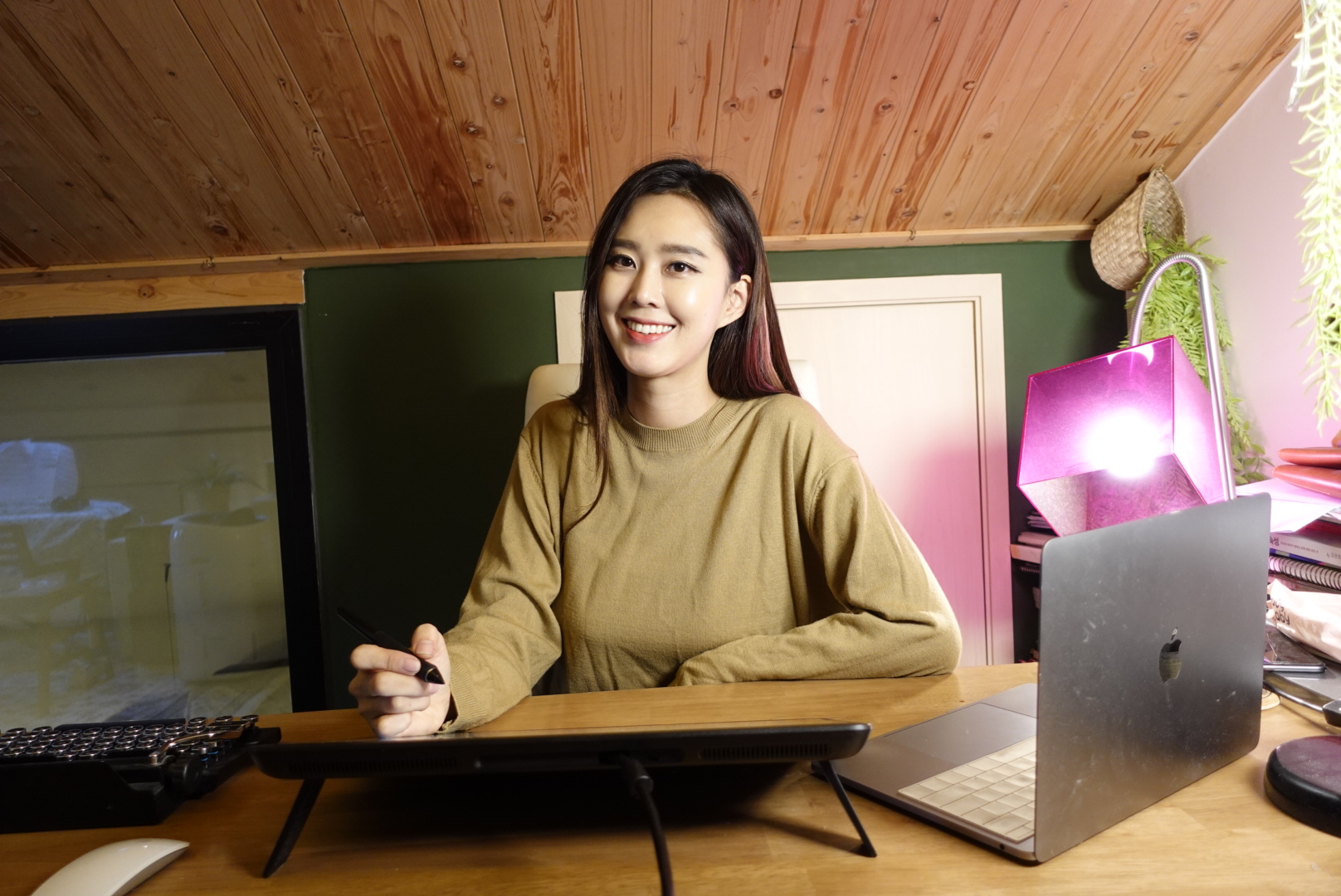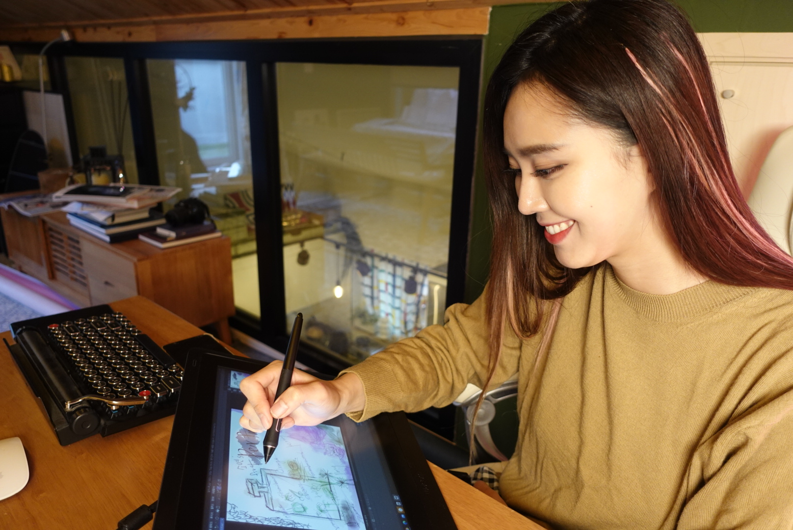 요즘은 언택트 시대로 집에서 모든 것들을 해야 하는 상황이 되어버렸어요. 저는 외향적인 성향이라서 다양한 것들을 배우러 나가거나 수업을 듣곤 했었는데요. 이제는 이 모든 것들을 집에서 하다보니 집이 작업실이 되고, 또 방송국이 되고, 또 스튜디오가 되고 있어요. 지금 제가 제일 좋아하는 공간이 바로 '와콤 타블렛 앞'입니다. 제 생각을 마음껏 펼칠 수 있게 되었으니까요.
