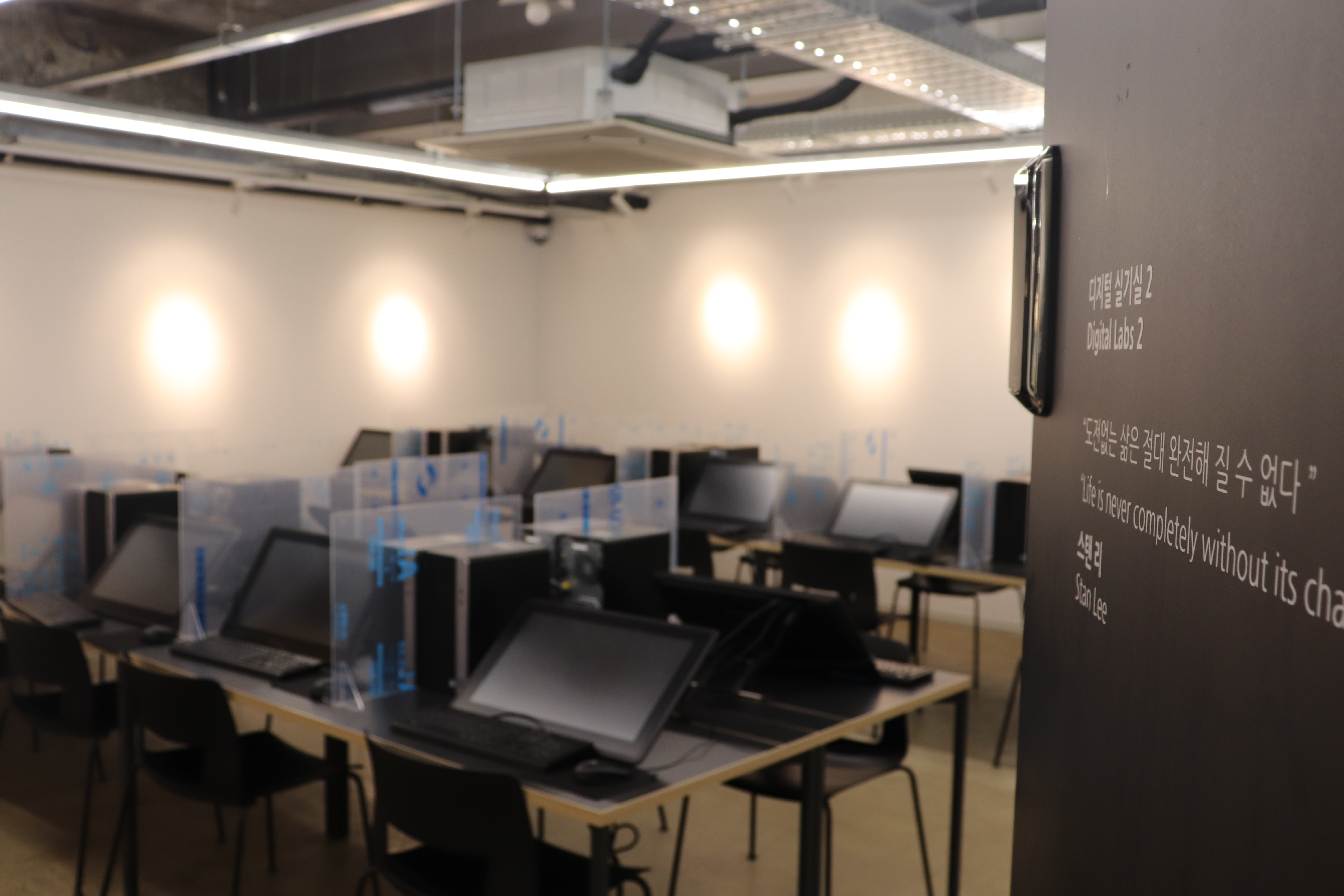 학생들에게 최상의 웹툰 교육 환경을 제공하고자 실제 웹툰 작품 활동을 하는 작가들로 구성된 강사진과 멘토 구성 외에도, 서울웹툰아카데미가 가장 심혈을 기울인 부분은 장비 도입입니다. 고성능 웹툰 창작 장비인 액정타블렛 와콤 신티크22 총 130대가 디지털실기실 4곳에 전면적으로 구축돼 있어 학생 1명당 1대의 와콤 타블렛으로 작업할 수 있는 환경을 마련했어요. 와콤 신티크22는 실제 웹툰 작가들이 가장 선호하는 화면 사이즈인 22형 크기인 데다가, 각도 조절에 용이한 스탠드 기본 장착, 프로급 제품과 동일한 ‘와콤 프로펜 2’가 탑재된 모델입니다.