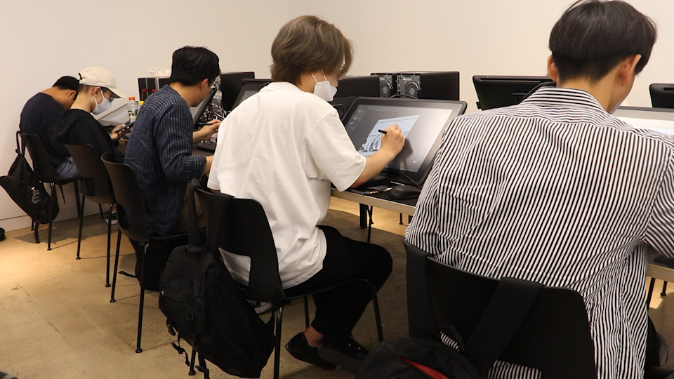 웹툰을 배우는 단계에서부터 실제 현업에서 웹툰 작가들이 사용하는 와콤 액정타블렛을 사용함으로써 실무 작업실 환경 조성뿐만 아니라, 오랜 시간 작업을 할 수 있는 드로잉 자세, 스크롤 형태의 웹툰 창작에 유리한 스크린 활용 등 아주 디테일한 부분까지도 멘토들의 노하우 전수가 이어지고, 실제 학생들의 만족도 역시 높다는 것이 서울웹툰아카데미 이종규 학장님의 설명입니다.