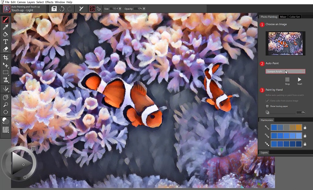 코렐(Corel) 사의 페인터 에센셜(Painter Essentials)은 재미있으면서도 복잡하지 않은 소프트웨어로, 다양하면서도 독특한 도구를 이용하여 빈 캔버스에 스케치(Sketch), 페인팅(Painting), 이미지 트레이싱(Image Tracing) 등 무궁무진한 작업이 가능합니다. 또한 강력한 인공지능 기술을 이용하여 사진을 인상적인 예술 작품으로 변화시킬 수도 있어요. 초보자들도 쉽게 사용할 수 있도록 사용자 친화적인 인터페이스 역시 '코렐 페인터 에센셜'만의 매력이랍니다.