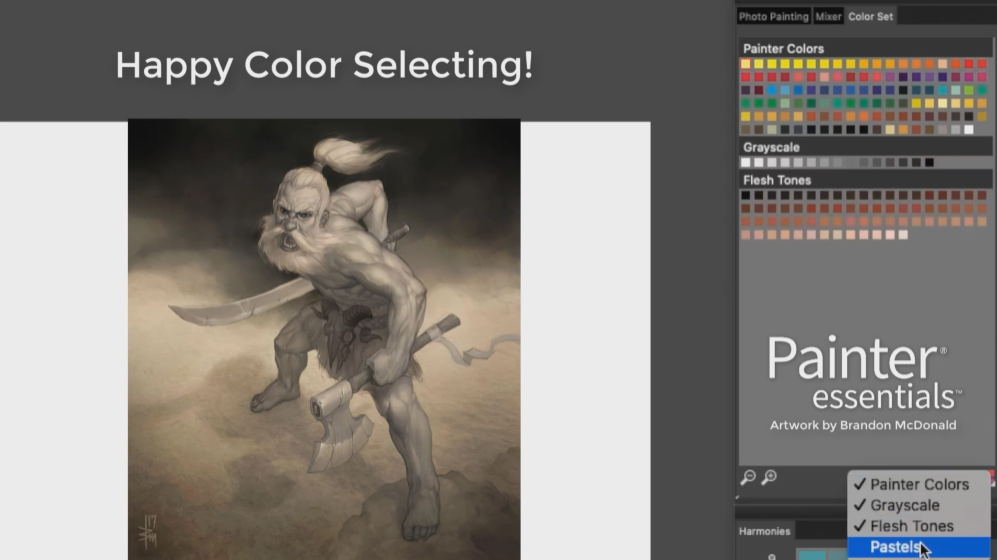 더욱 조화로워진 색 조화는 페인팅 컬러를 쉽게 선택하도록 도와줍니다. 색상을 선택하면 보색과 단색을 포함한, 균형 잡힌 컬러 스와치가 생성되는데요. 그레이스케일, 피부 색, 파스텔 색상 세트를 클릭 한 번으로 선택할 수 있답니다.