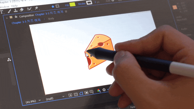 귤랭이님은 요즘 애프터이펙트(Adobe Aftereffect)를 이용한 모션그래픽을 배우고 있습니다. 모션을 섬세하게 구현하기 위해서는 누끼를 딸 때 기준점을 많이 잡아주는 게 좋아요. 마우스로 할 때는 다소 불편했지만, 와콤 원을 사용하여 누끼 따기 작업을 해보니 훨씬 좋았다고 해요. 손목에 부담도 덜 느껴지고 작업 속도도 빨라져서, 생산성 역시 높아졌습니다.