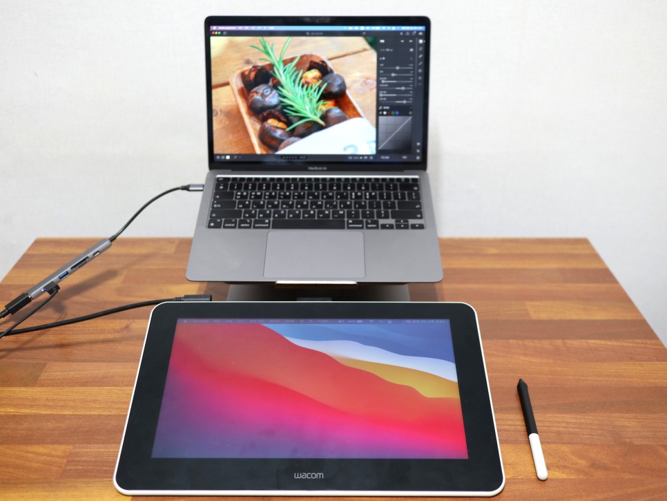 귤랭이님은 컨버터를 이용하여 와콤 원과 맥북을 연결해 사용했습니다. 와콤 원은 데스크탑을 비롯해 노트북, 안드로이드 OS의 특정 기기 등에 연결하여 사용 가능한 액정 타블렛이에요.