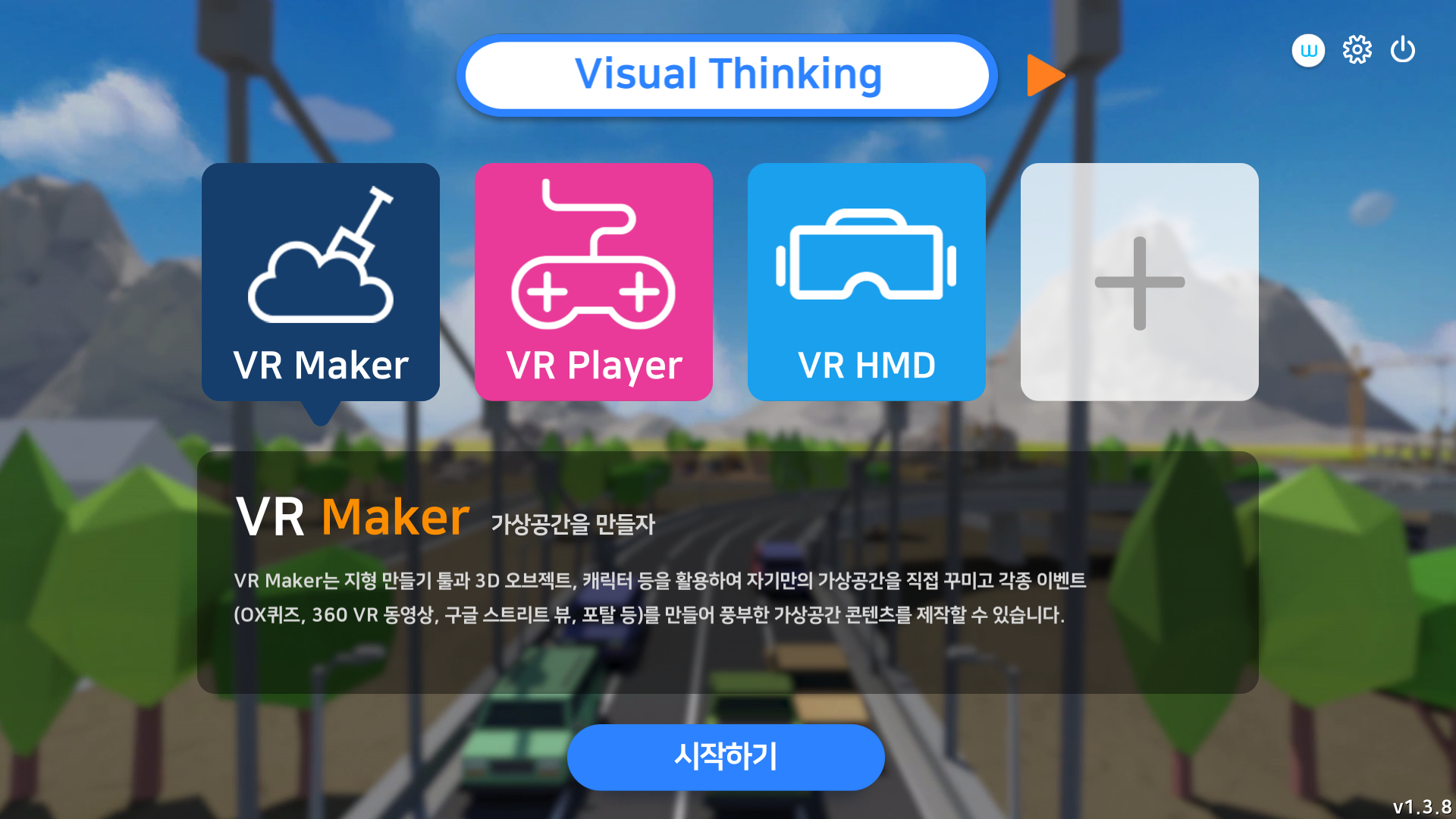 VR Maker에서는 나만의 맵을 제작하거나 수정할 수 있고, 각종 이벤트를 만들어 풍부한 VR 콘텐츠를 제작할 수 있습니다. VR Player에서는 다양한 VR 콘텐츠를 체험하면서 OX 퀴즈, 360 VR 동영상, 교육용 학습 영상 등의 이벤트를 활용한 인터랙티브 학습이 가능합니다. 다른 사람들이 공유한 맵을 플레이할 수도 있어요. VR HMD는 VR 장비를 통해 가상공간을 직접 체험할 수 있는 메뉴입니다. 휴대폰에 애플리케이션을 설치한 후 이용 가능하며, 제공되는 VR 카드보드와 스마트폰을 이용해서 내가 만든 VR 맵을 직접 탐험할 수 있어요.