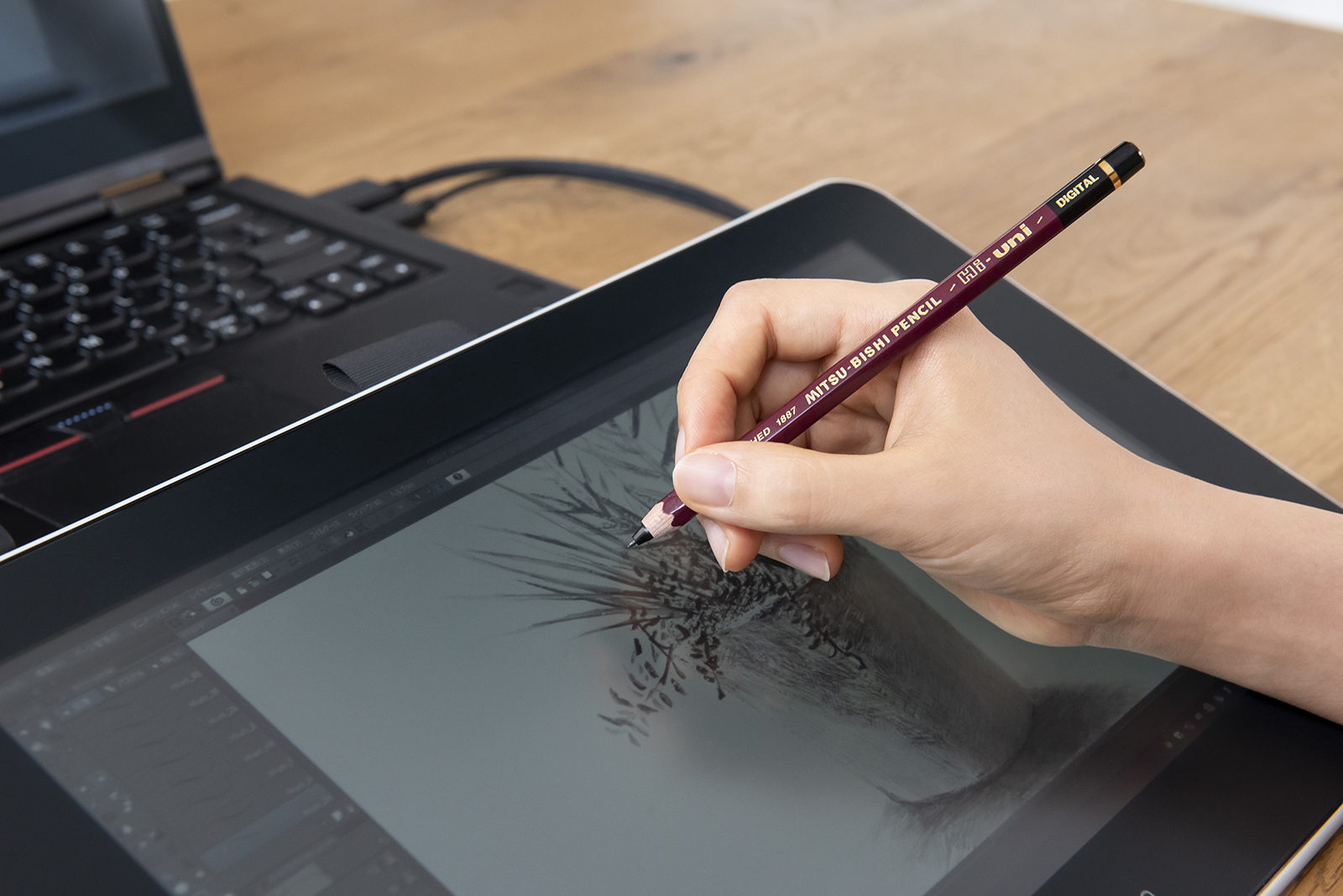 하이유니 디지털 펜은 필기구 전문 브랜드 하이유니(Hi-Uni) 연필과 와콤의 협력을 통해 제작되었는데요, 하이유니 연필은 '유니' 시리즈의 베스트 셀러이자, 최고급 나무 소재를 사용한 연필입니다. 무려 1950년대부터 생산된, 긴 역사를 가진 제품이지요. 이렇게 오랫동안 사랑받은 하이유니 연필에 와콤의 펜 기술력이 더해져서 육각 연필의 아날로그적인 느낌이 디지털 펜으로 구현되었습니다.