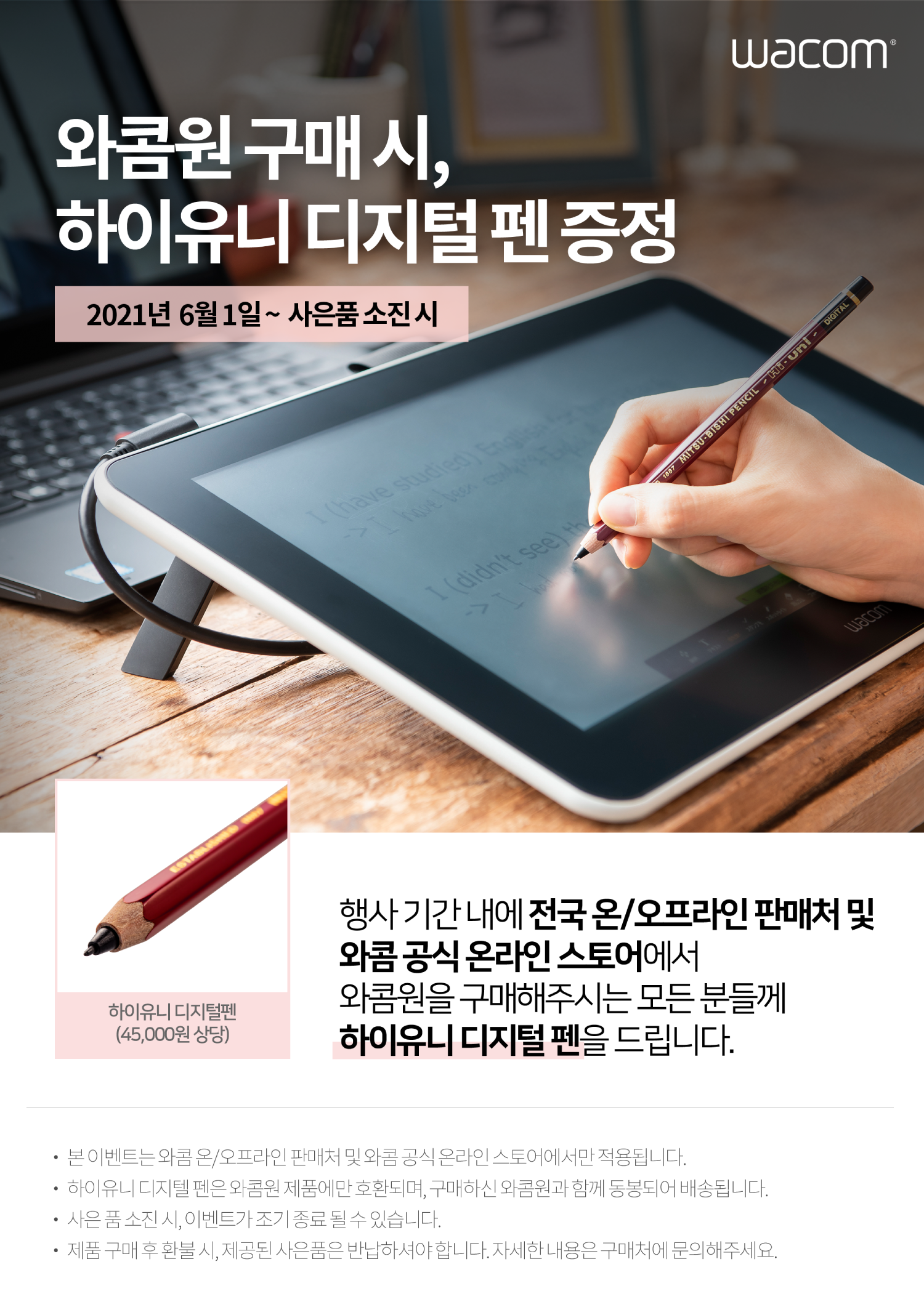 와콤 원 구매 고객 대상 하이유니 디지털 펜 프로모션 실시