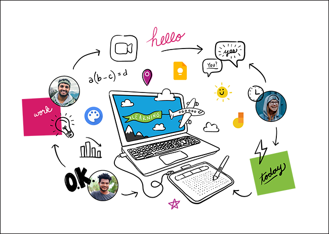 ‘와콤 인튜어스’ 및 ‘원바이와콤’ 타블렛과 크롬북의 장점을 결합해 활용했을 때, 학생과 교사 모두 각자의 기존 방식에서 더 편하게 업그레이드 할 수 있으며, 온오프라인이 결합된 교육 상황에 놓인 학교나 가정에서의 교육과 학습에 도움을 줄 수 있습니다. 또 와콤 타블렛, 크롬북과 함께 추가적인 온라인 교육 툴들을 활용하여 교사와 학생이 실시간으로 여러 장소에서 쉽게 연결, 커뮤니케이션 및 협업을 할 수 있습니다.