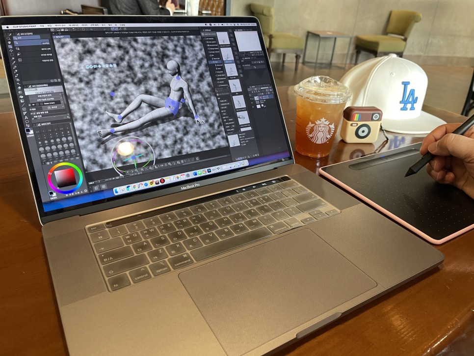 대니얼과 제이미님은 맥북 프로과 인튜어스를 연결해서 클립스튜디오 프로를 사용해 보았습니다. 스케치 드로잉을 연습하면서 단순 필기 프로그램을 사용할 때와는 다른 경험을 할 수 있었지요. 웹툰 작가를 꿈꾸는 사람에게도 입문용 타블렛으로 인튜어스를 추천합니다.