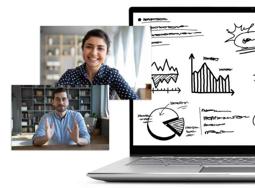 최대 25명으로 구성된 소규모 그룹에 적합하며, 수업을 기록할 수 있는 온라인 수업용 화이트보드입니다.