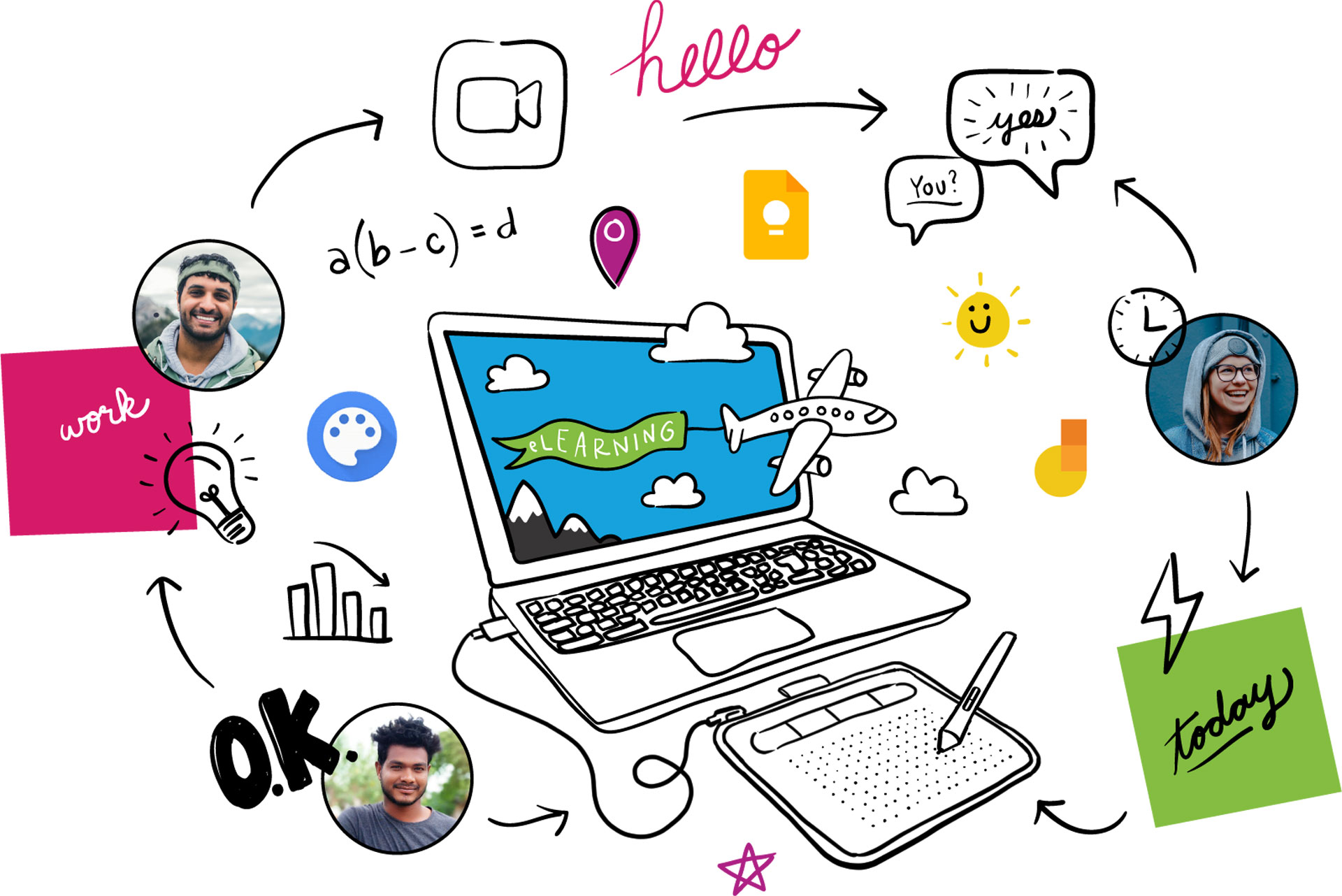 크리에이티브 작업 외에도 펜 타블렛은 학습 용도로 사용 가능합니다. 학교, 학원 수업이 Zoom(줌)이나 Google Meet(구글 미트)를 이용해 온라인으로 진행되더라도 펜 타블렛으로 직접 필기할 수 있다면 노트 필기가 재미있어질 거예요.