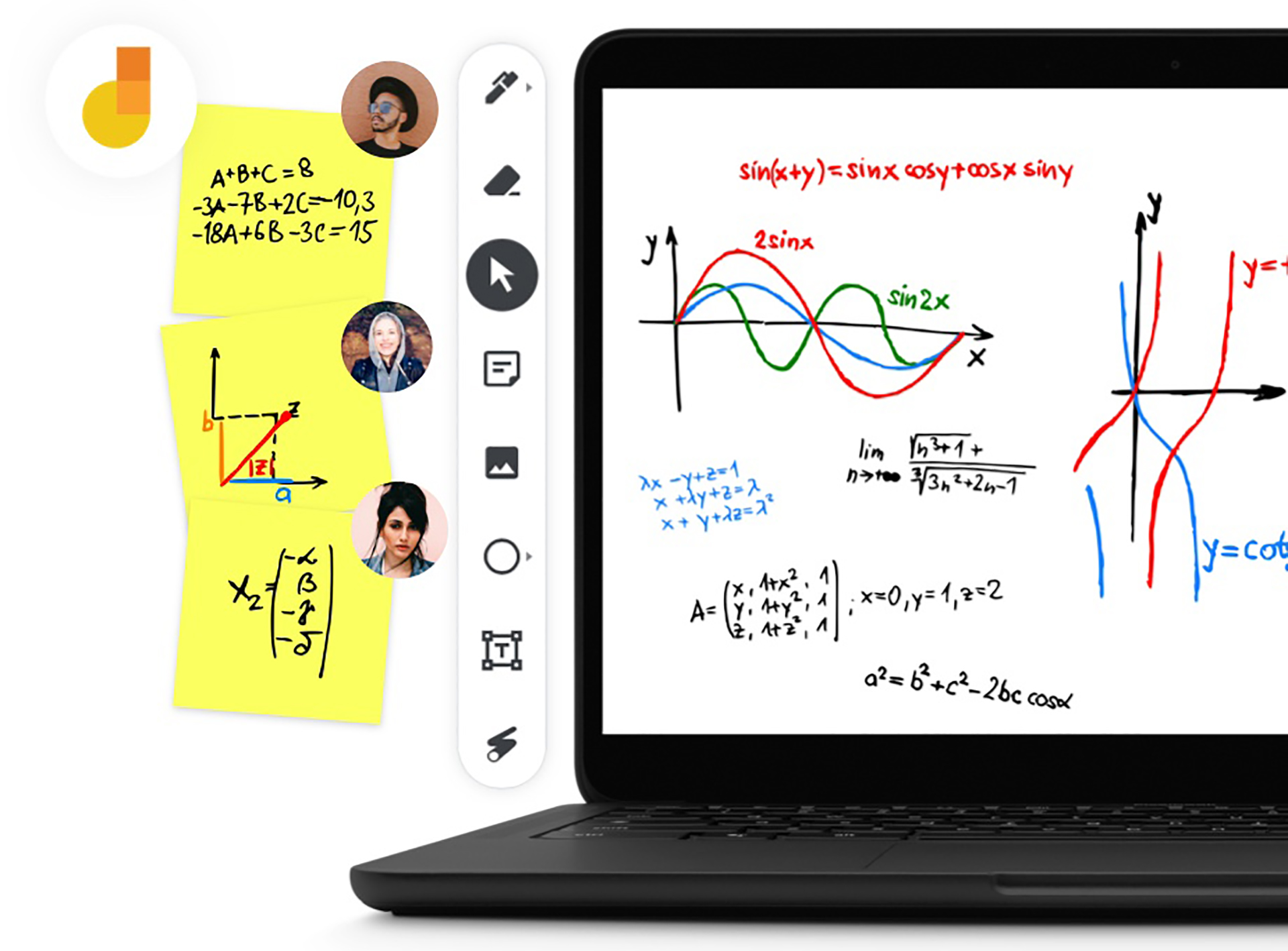 최대 25명으로 구성된 소규모 그룹에 적합하며, 수업을 기록할 수 있는 온라인 수업용 화이트보드입니다.