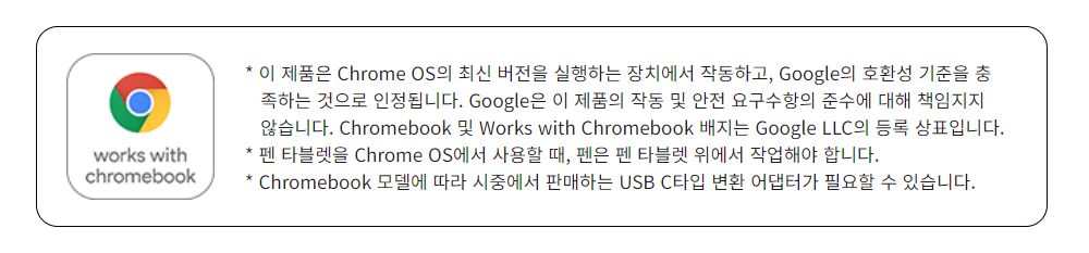 * 펜 타블렛을 Chorome(크롬) OS에서 사용할 때, 펜은 펜 타블렛 위에서 작업해야 합니다.