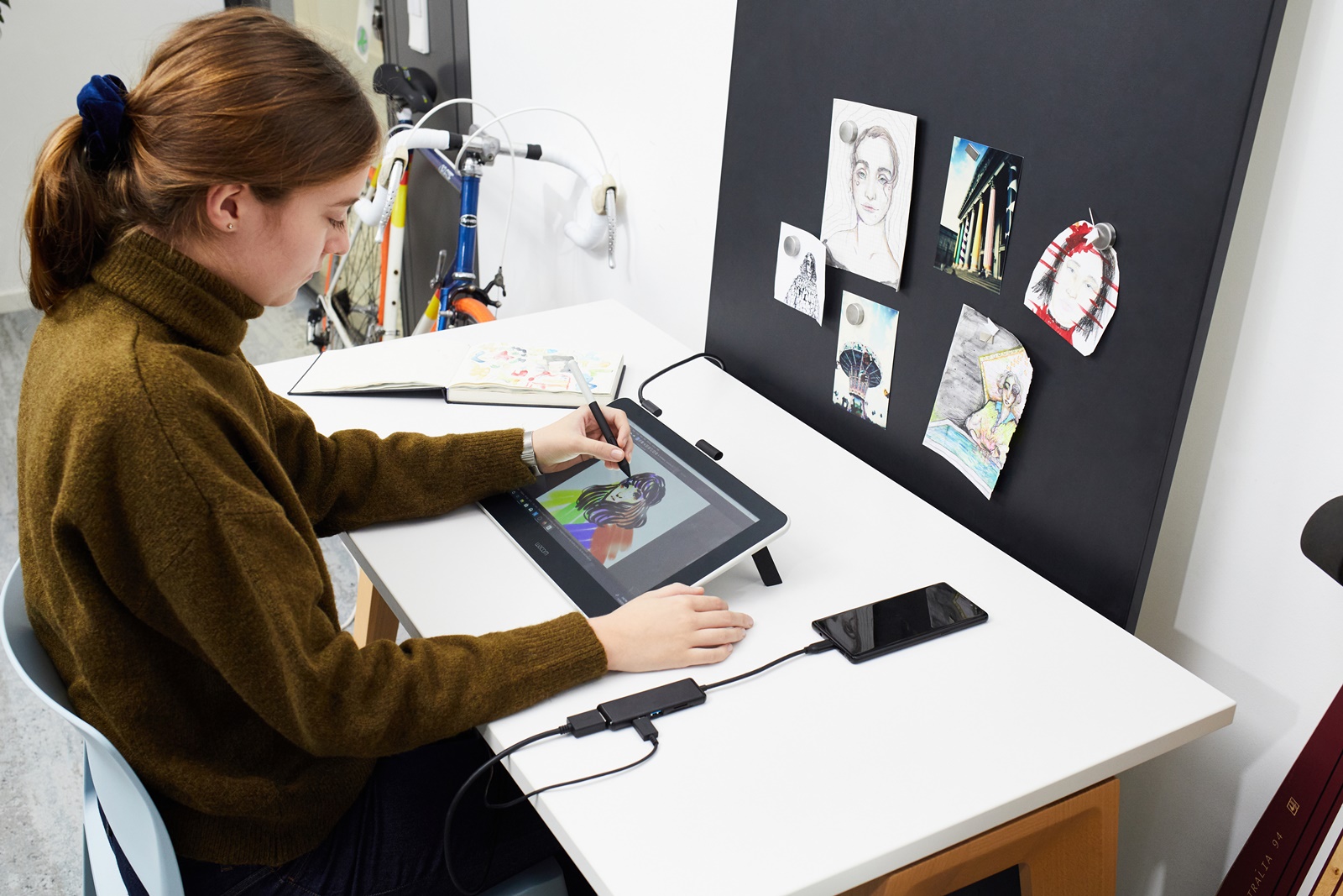 그렇다면, 추석 연휴 기간에 액정타블렛 와콤 원으로 디지털 다꾸를 하면서 온전한 휴식 시간을 가져보는 것은 어떨까요? 와콤 원은 약 13인치 스크린 사이즈의 액정 타블렛인데요, 액정 위에 디지털 펜으로 그림을 그리거나 글씨를 쓸 수 있어요. 마치 진짜 종이에 펜을 사용하는 것 같은 자연스러운 작업 환경을 제공하고, 화면에 손이 닿더라도 인식하지 않는 팜리젝션 기능을 지원해서 초보자도 쉽고 직관적으로 작업할 수 있답니다.
