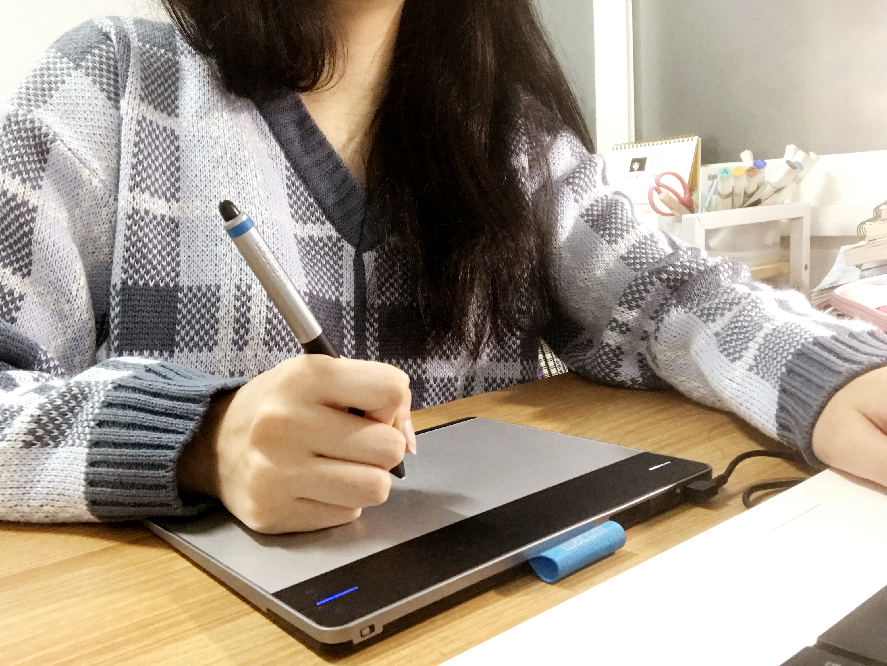 A. 저는 중학교 2학년 때 처음으로 와콤 타블렛을 구매했습니다. 5만 원 대의 저렴한 타블렛도 많았지만, 아무래도 타블렛의 상징 격으로 알려져 있는 와콤 타블렛은 더욱 특별할 것 같다는 생각이 들었어요. 비교적 저렴했던 10만 원 대의 펜타블렛으로 구매했습니다. 가장 관심이 갔던 건 와콤의 독자적인 필압 기술입니다.