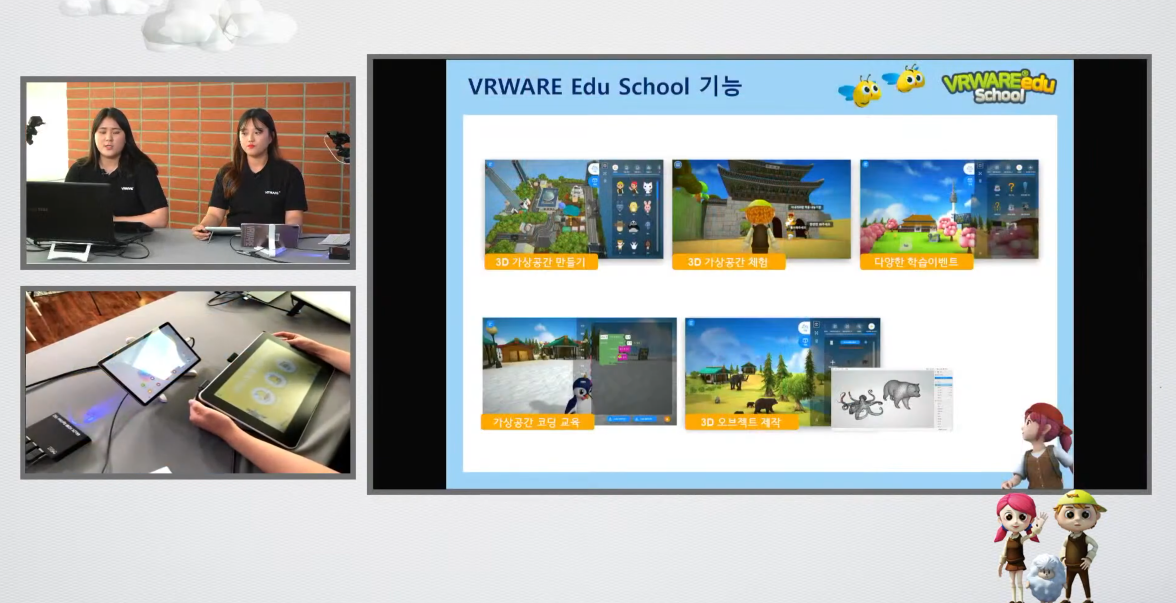 특히 이번 웨비나에서 다루는 VR웨어 스토리빌더와 VR웨어 스쿨은 와콤 타블렛과 함께 사용함으로써 시너지를 발휘하고 학생들과 선생님들에게 좋은 반응을 얻고 있어요. 와콤 타블렛을 호환 가능한 안드로이드와 연결하면 쉽고 편하게 사용할 수 있답니다. 이제 두 프로그램을 차례대로 소개해볼게요!
