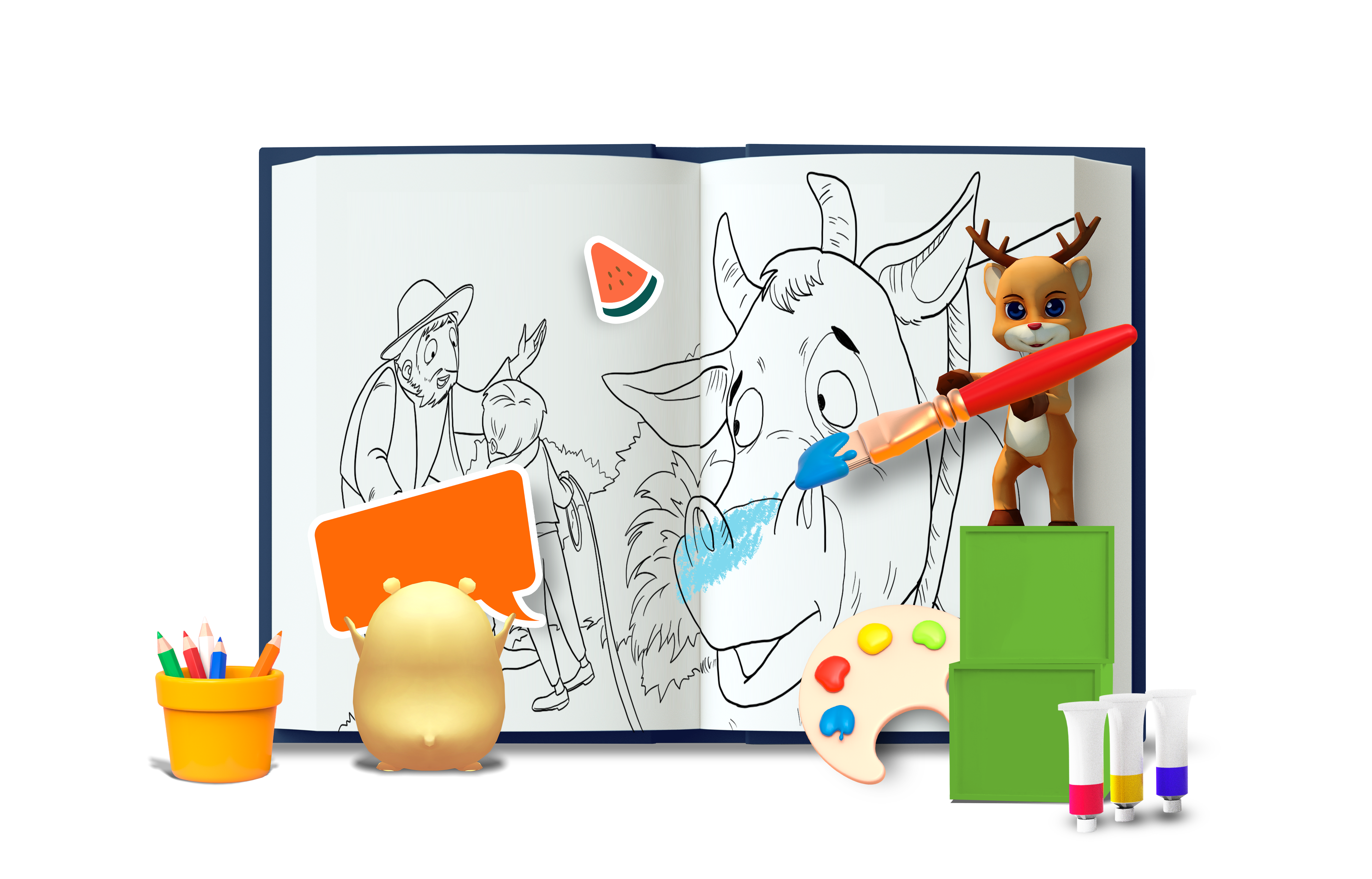 두 번째 기능은 스케치북인데요, 스토리북과 달리 색칠되지 않은 선만 남아 있어요. 취향에 맞게 동화를 색칠할 수 있습니다.