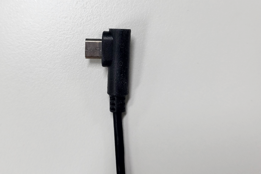 케이블의 양 끝을 보여드리겠습니다. 왼쪽은 PC에 연결하는 USB-A 단자입니다. 오른쪽 단자는 인튜어스 측면 상단에 있는 포트에 연결해주세요.