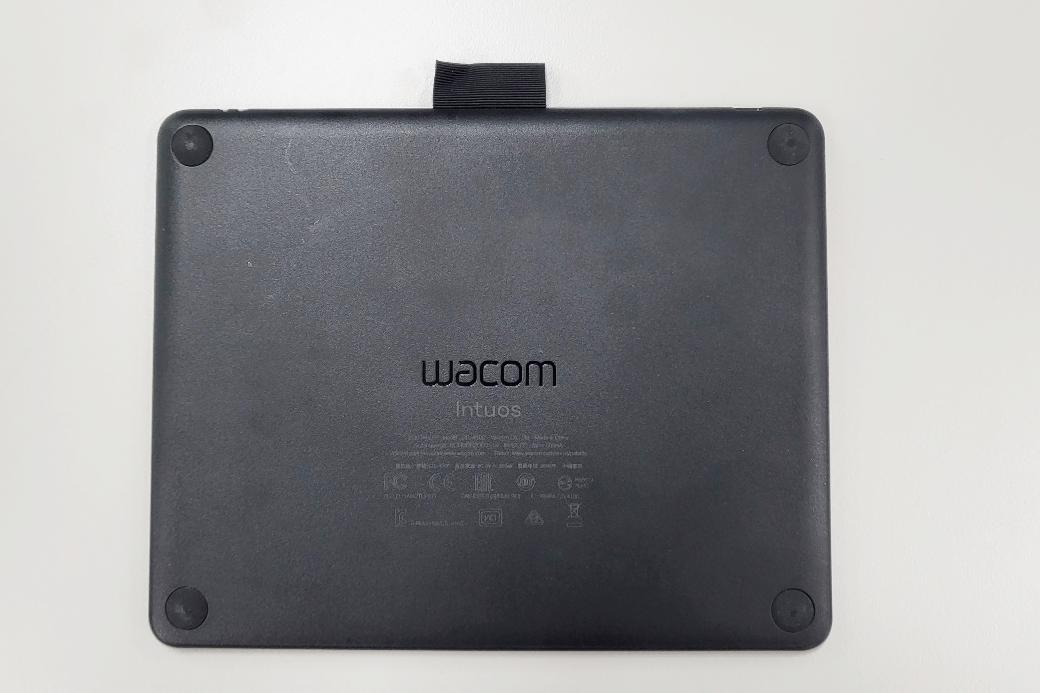 먼저, 와콤 인튜어스는 저렴한 가격으로 인해 입문용 펜타블렛으로도 불리는 가성비 타블렛입니다. 매우 가볍고 휴대하기 용이하다는 장점이 있어요. 소형과 중형 두 가지 사이즈가 있고, 블루투스를 지원하는 모델과 USB 연결만 지원하는 모델이 있는데, 오늘은 USB 연결만 지원하는 인튜어스 소형(CTL-4100)을 소개합니다. 200x160mm의 사이즈와 8.8mm의 두께, 230g의 무게에 불과해서 정말 가벼워요.