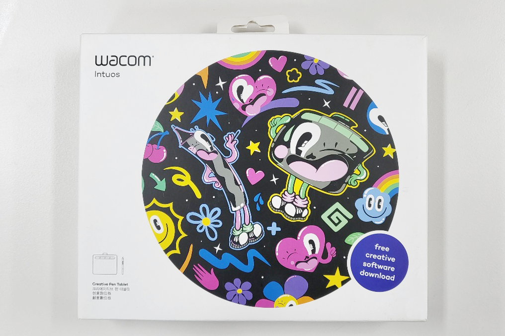 인튜어스 소형 상자의 앞면과 뒷면입니다. 아주 귀여운 일러스트가 눈에 띄네요! 번들 소프트웨어를 다운로드할 수 있다는 free creative softeware download 안내 문구도 적혀 있습니다. 뒷면에서는 간단한 제품 특징을 확인할 수 있어요.
