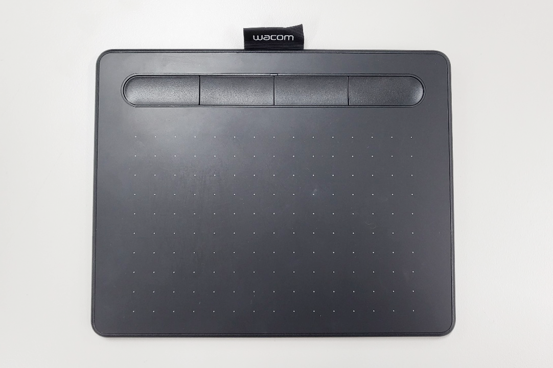 먼저, 와콤 인튜어스는 저렴한 가격으로 인해 입문용 펜타블렛으로도 불리는 가성비 타블렛입니다. 매우 가볍고 휴대하기 용이하다는 장점이 있어요. 소형과 중형 두 가지 사이즈가 있고, 블루투스를 지원하는 모델과 USB 연결만 지원하는 모델이 있는데, 오늘은 USB 연결만 지원하는 인튜어스 소형(CTL-4100)을 소개합니다. 200x160mm의 사이즈와 8.8mm의 두께, 230g의 무게에 불과해서 정말 가벼워요.