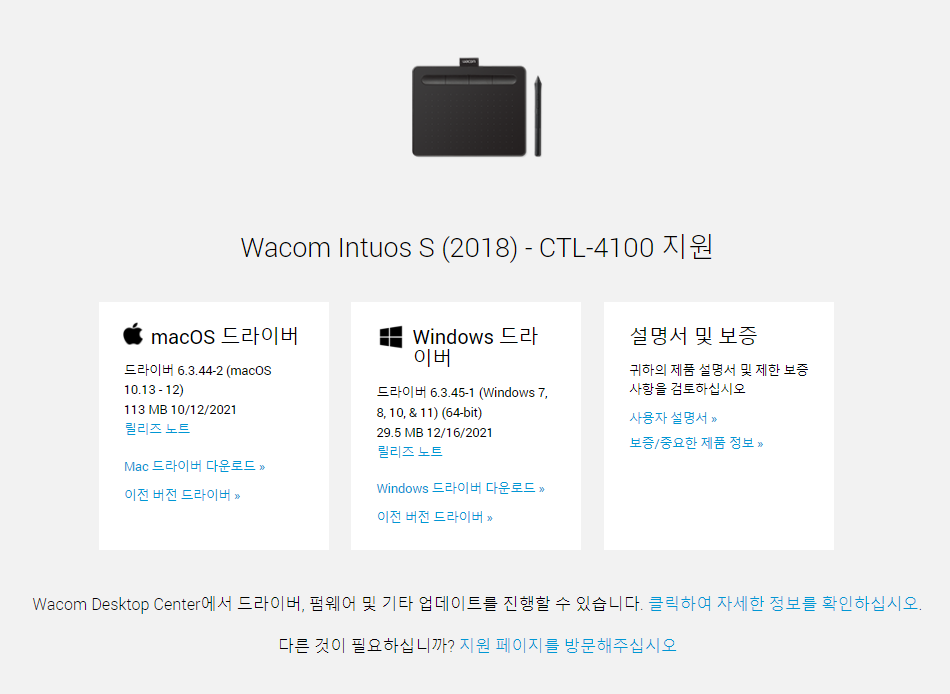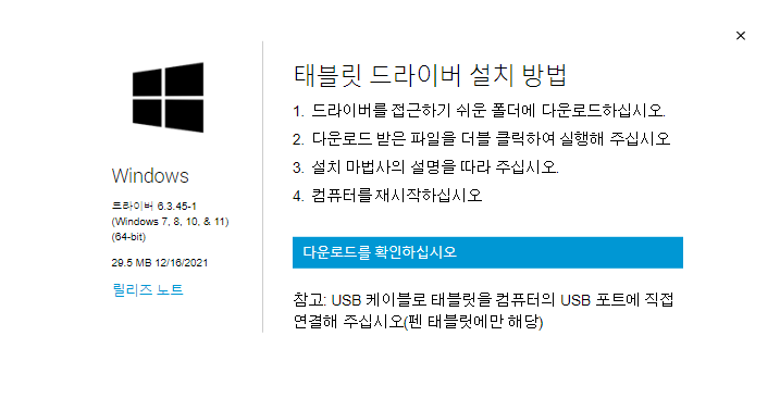 드라이버 다운로드는 와콤 원과 크게 다르지 않기 때문에, 먼저 이전 금손되기 프로젝트 글을 읽어주세요.