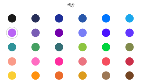 색상은 투두메이트의 매력 중 하나입니다. 각 목표별로 색상을 정해두고 해당 목표를 완료하면 캘린더에 색상이 칠해지는데, 하루에 여러 목표를 달성한 경우에는 각 색상이 혼합되어 표시되어요. 더욱 멋진 색조합을 위해서, 투두메이트 색조합을 추천하는 글도 많이 올라와 있어요.