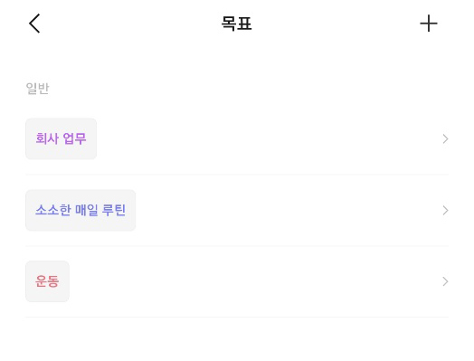 목표 탭에 들어가면 내가 원하는 목표를 추가할 수 있어요. 저는 회사 업무와 매일 루틴, 운동을 나누었습니다. 공개 설정도 자유롭기 때문에 친구한테만 목표를 공유할 수도 있고, 남에게 공개하고 싶지 않은 목표는 나만보기로 설정해두면 되어요.
