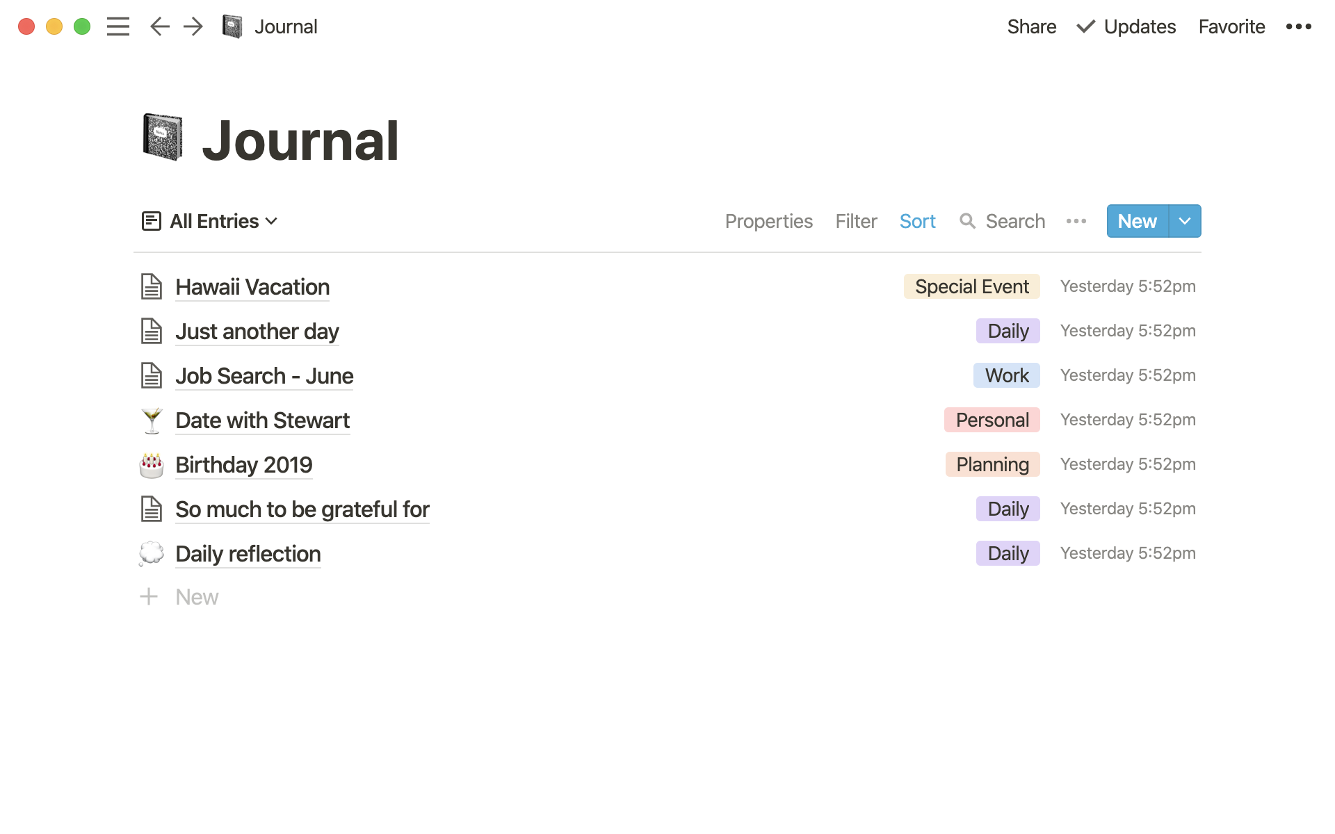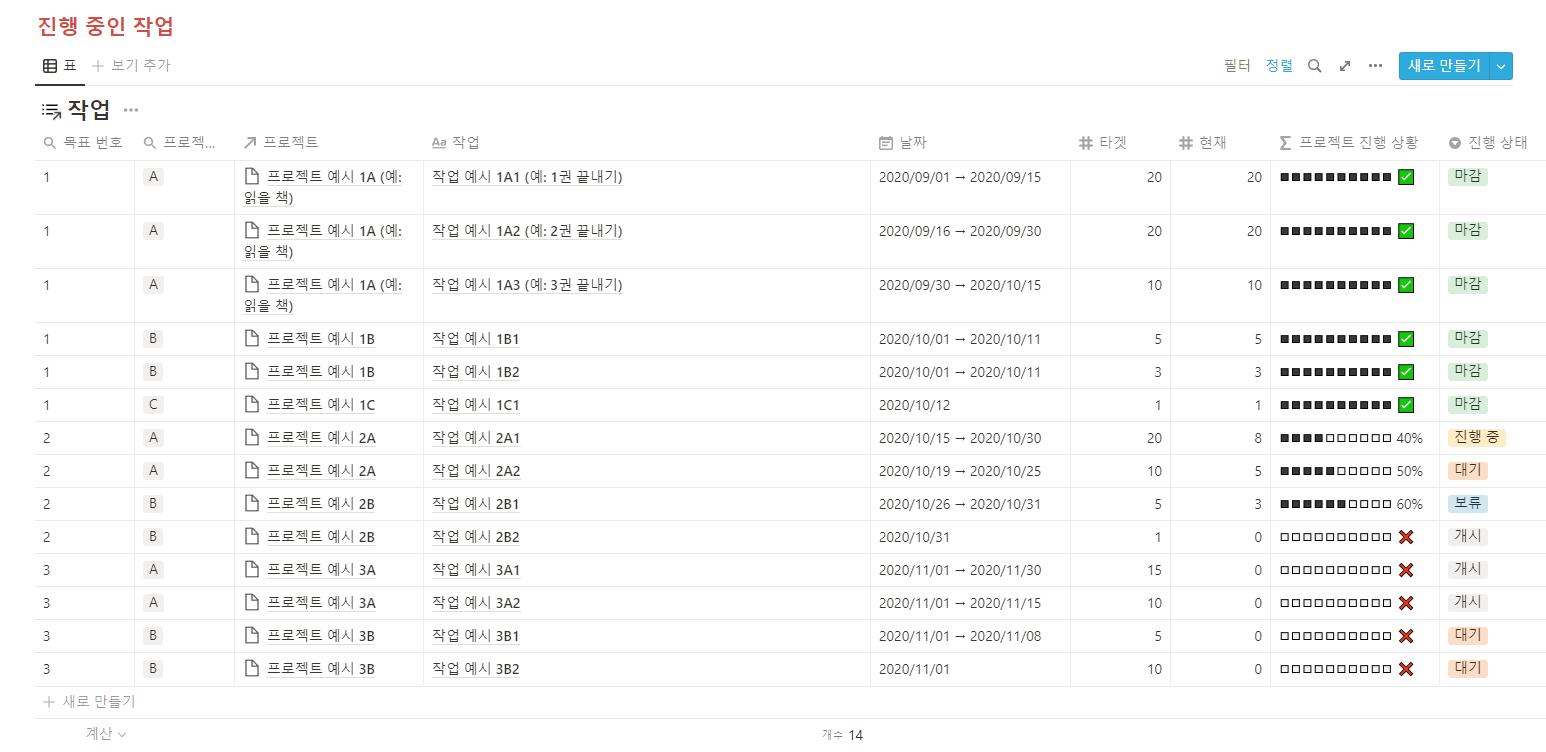 노션에서 기본적으로 제공하는 작업 목록 템플릿을 이용한 블로그 게시물 리스트입니다. 얼마든지 업무, 일상 영역 등에서 내가 원하는 내용을 담을 수 있습니다.