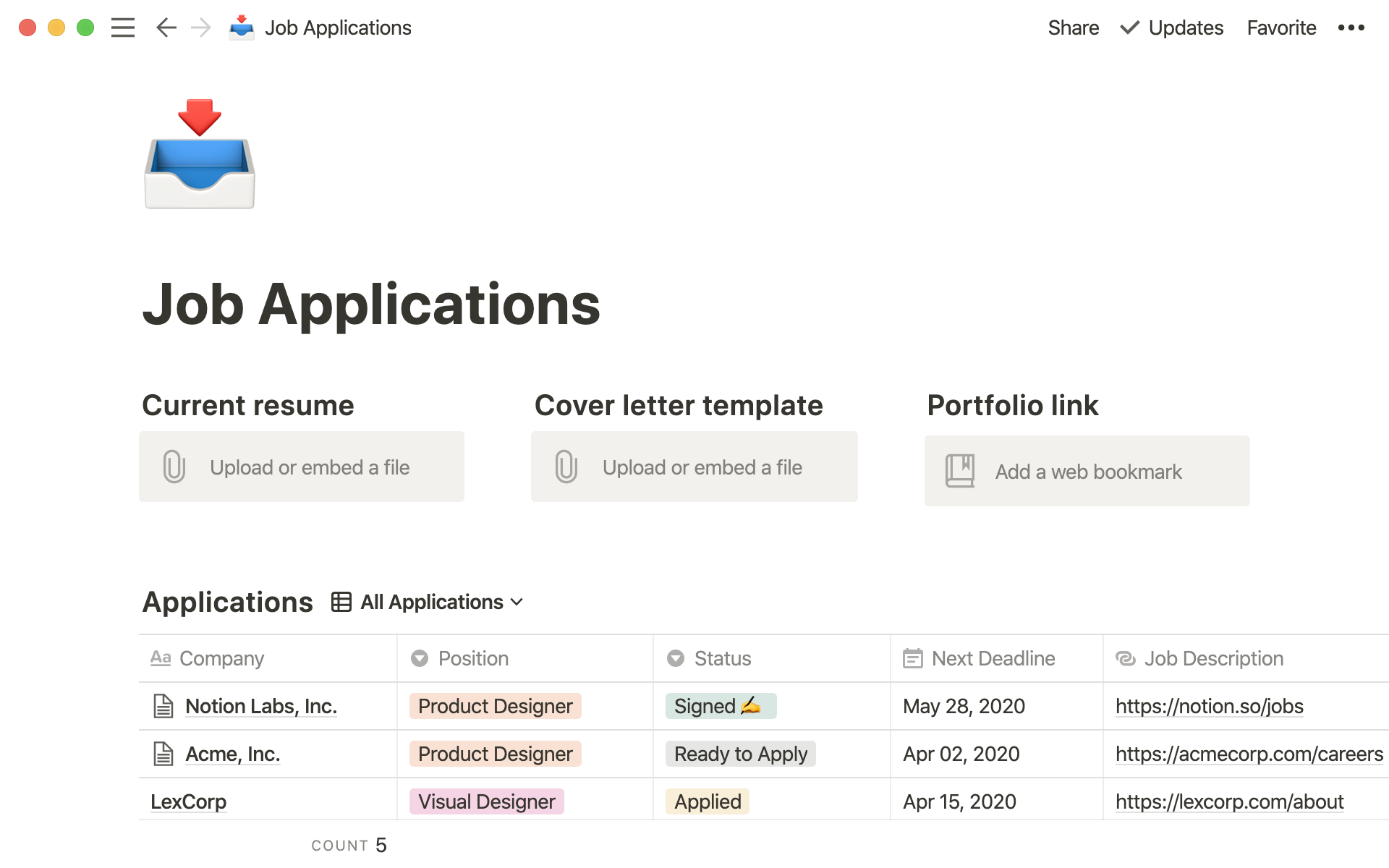 요즘에는 개인 포트폴리오를 노션에 정리하는 직장인들이 많아지고 있는데요, 깔끔하고 가독성 좋은 유저 인터페이스 덕분에 나를 소개하는 이력서나 자기소개서 용도로도 적절해요.