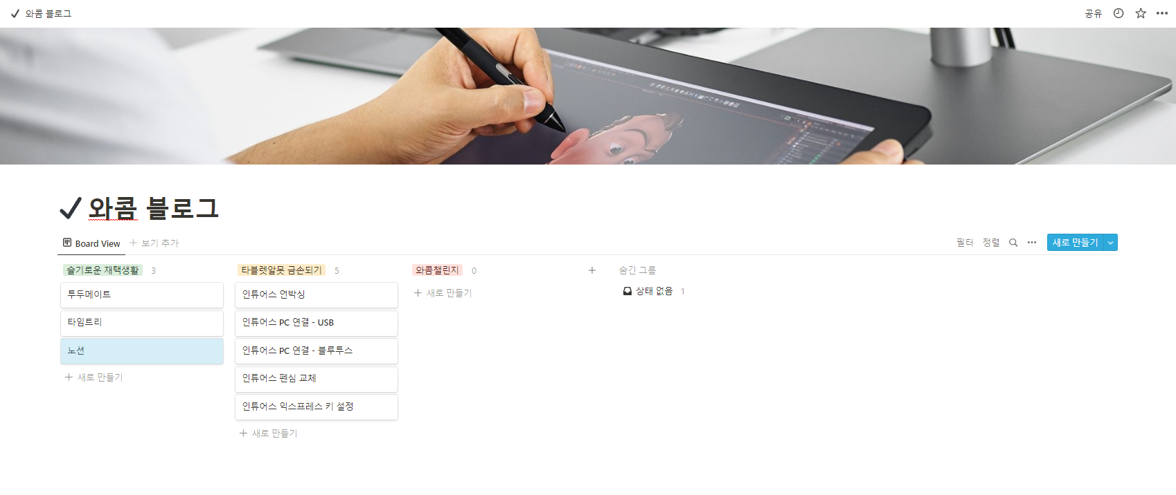 그렇다면, 노션은 과연 어떻게 사용하는 걸까요? 노션을 사용하는 방법은 노션 홈페이지에서도 확인할 수 있지만, 와콤 블로그에서도 기본적인 내용을 소개해보도록 할게요.
