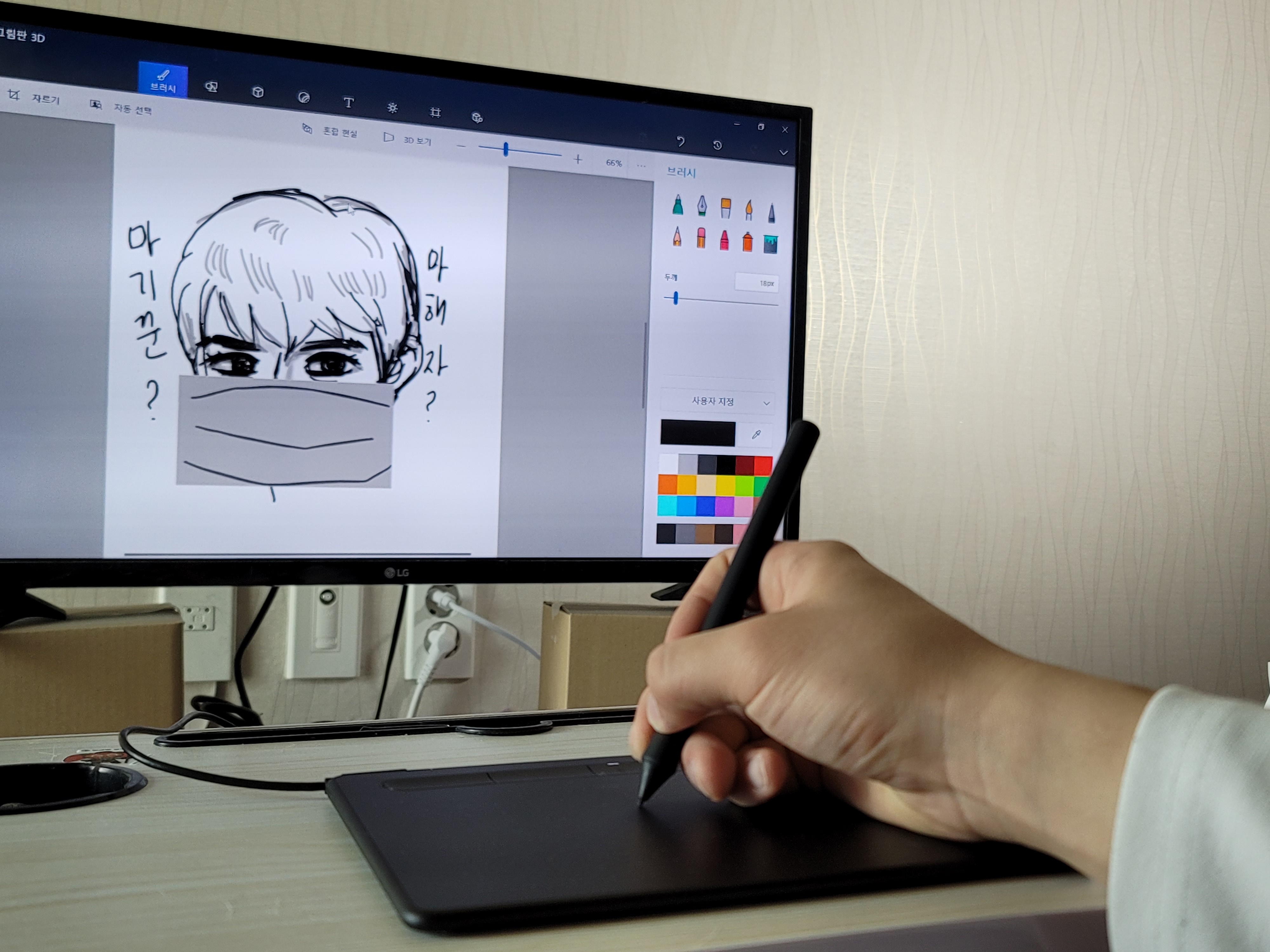 A. 이번에 받은 와콤 인튜어스 소형 모델을 이용해서, 틱톡에서 인기를 얻었던 마해자와 마기꾼 그림을 그려보았습니다. 또, 지금처럼 틱톡의 유행 밈을 저만의 스타일로 계속해서 그려서 틱톡 크레용가로 채널에 업로드하고 싶어요.