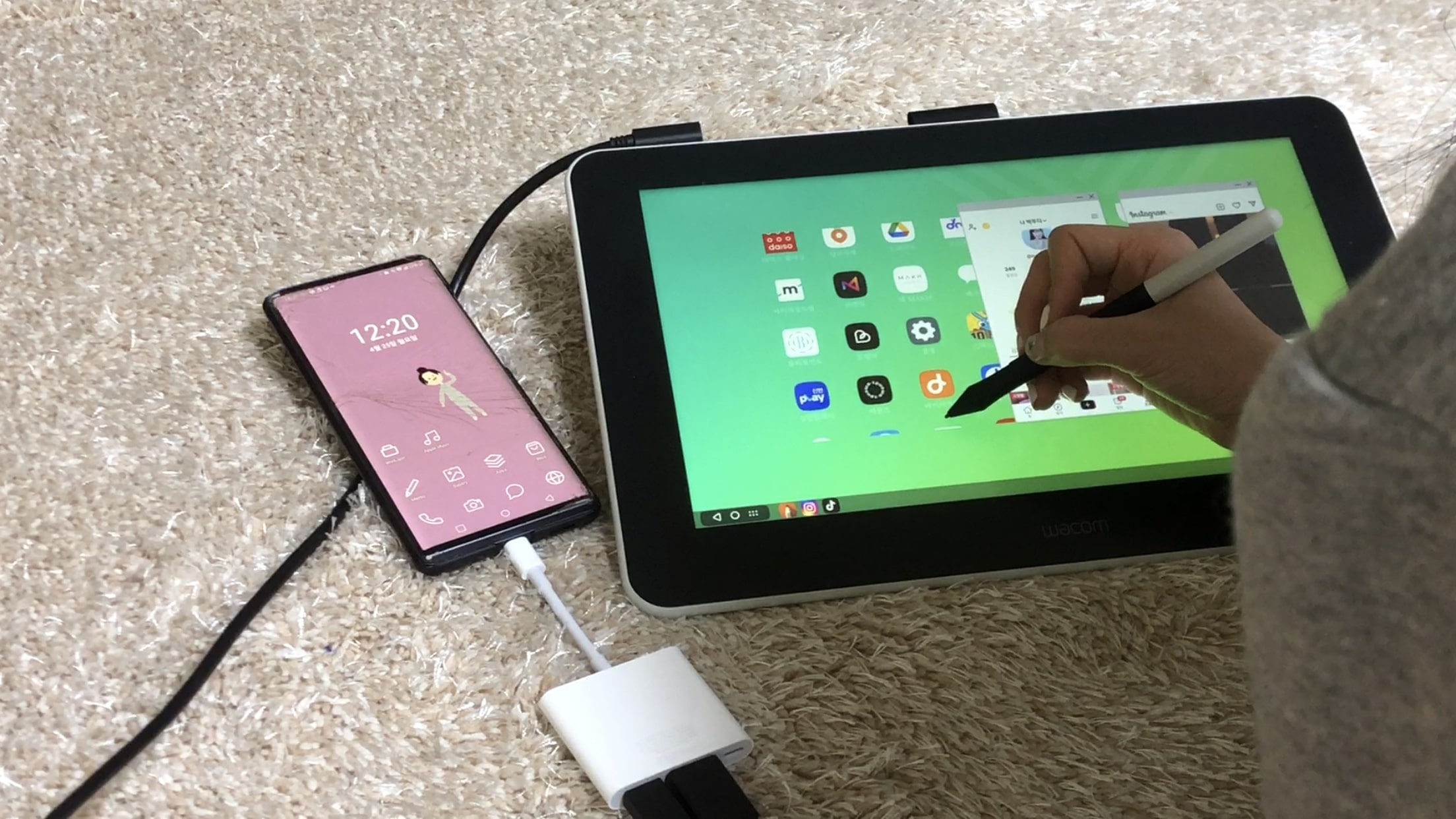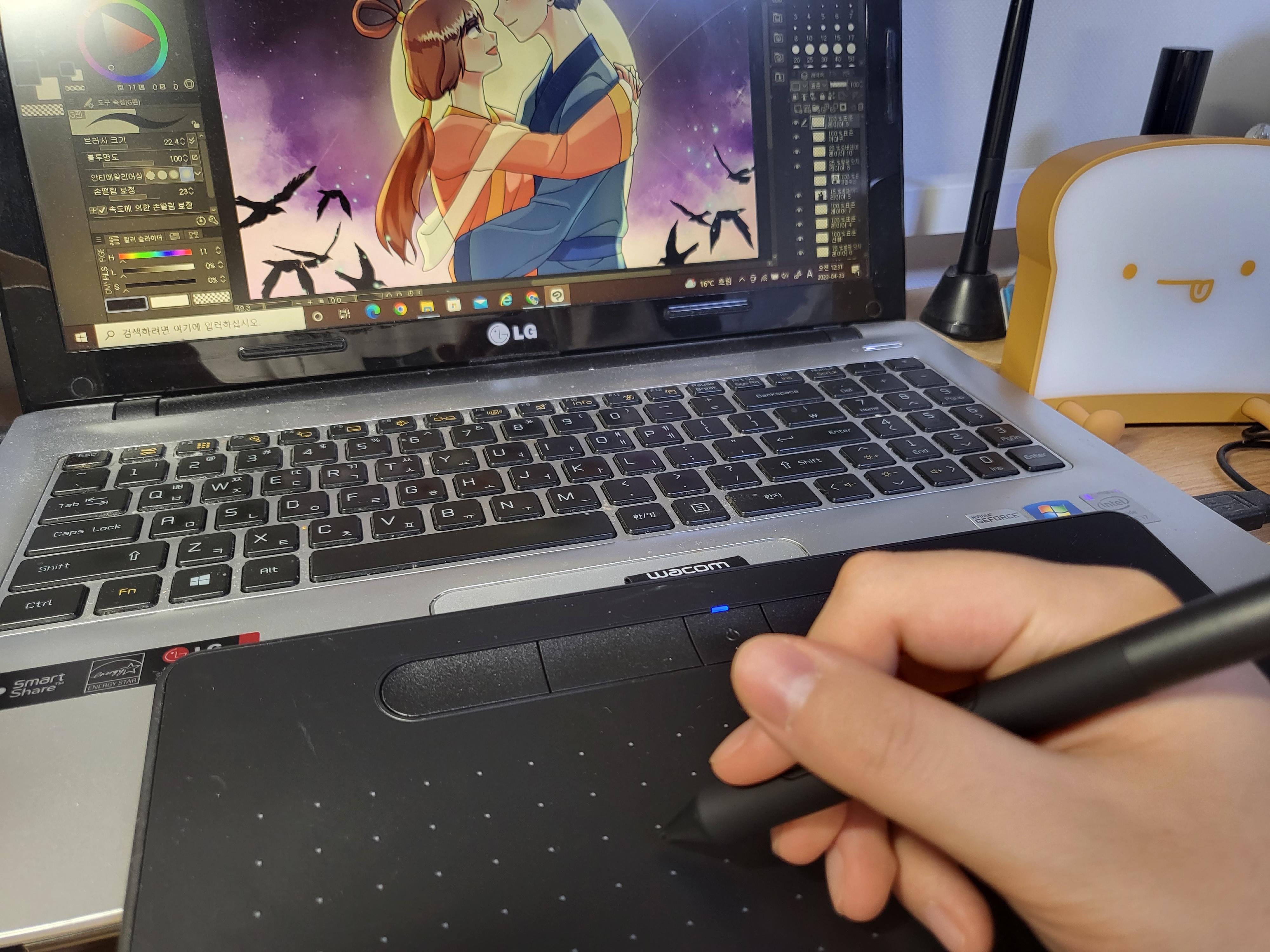 A. 사용하던 핸드폰 화면이 작아 디지털드로잉을 할 때 불편한 적이 많았는데, 와콤 타블렛을 연결하여 큰 화면으로 그림작업은 물론 핸드본 전반적인 작업을 모두 수행 할 수 있다는게 저에게는 큰 장점이었습니다.