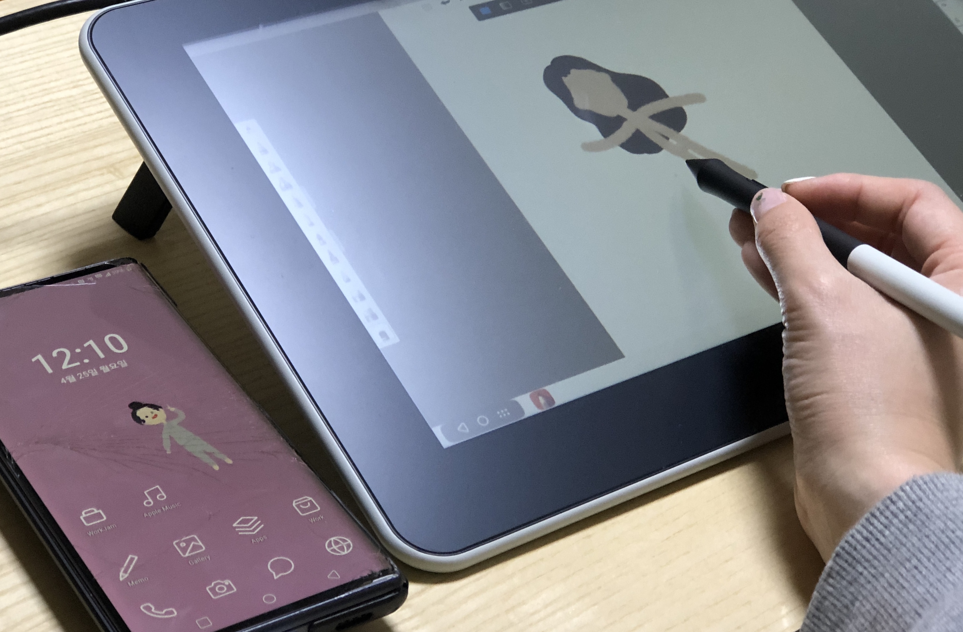 A. 사용하던 핸드폰 화면이 작아 디지털드로잉을 할 때 불편한 적이 많았는데, 와콤 타블렛을 연결하여 큰 화면으로 그림작업은 물론 핸드본 전반적인 작업을 모두 수행 할 수 있다는게 저에게는 큰 장점이었습니다.