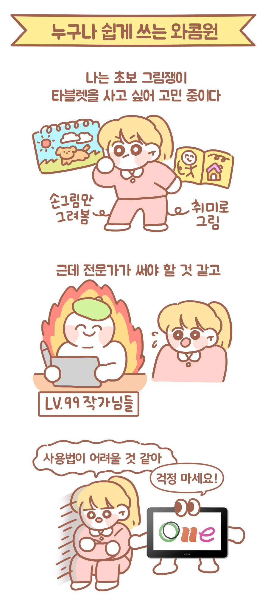 주야 작가의 귀여운 일러스트와 함께 와콤 원이 어떤 제품인지 차근차근 알아봅시다!