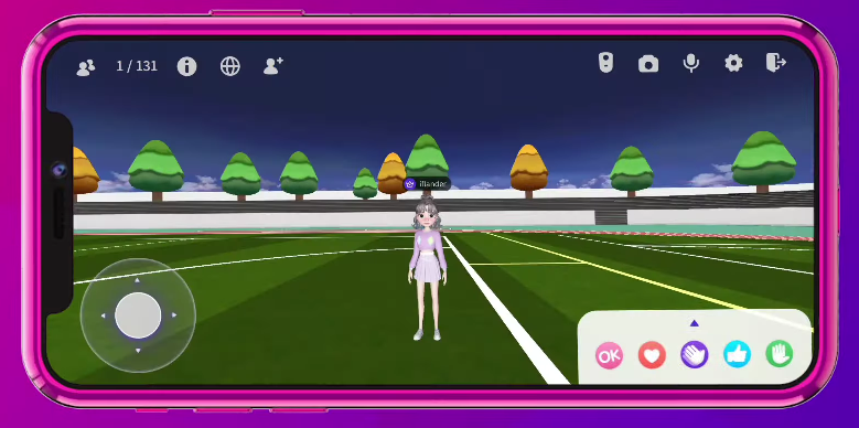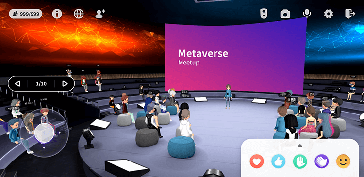 랜드에서는 회의, 발표, 미팅 등 다양한 활동을 할 수 있습니다. 입학식, 설명회, 회의, 세미나, 포럼, 컨퍼런스 등 모든 활동이 가능해요. 랜드 내에서는 PDF 파일과 영상 자료를 공유할 수 있으며, 다른 유저들과 함께 기념 사진을 촬영할 수도 있어요. 60여개의 감정 표현과 모션 리스트를 선택해서 자신의 감정을 맘껏 드러낼 수 있습니다. 놀란 표정을 짓거나, 신나게 춤을 출 수도 있지요. 하트와 박수를 누르면 머리 위로 이모티콘이 나타나 활발한 커뮤니케이션에 도움을 줍니다.
