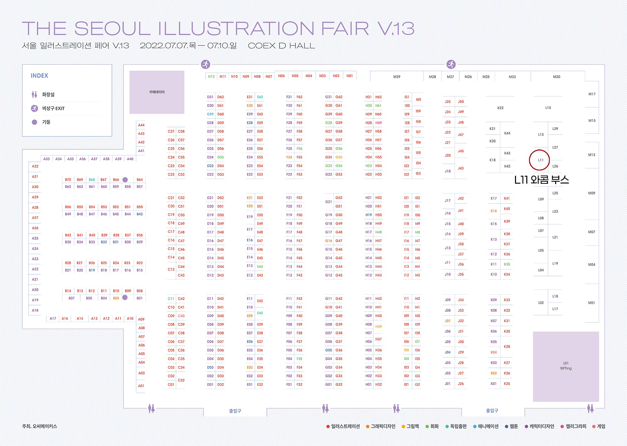 L11번 와콤 부스는 행사장 우측 안쪽에 위치해 있습니다. 출입구에서부터 우측으로 쭉 들어가서 다시 안쪽으로 걸어다가 보면 와콤 타블렛이 전시된 와콤 부스가 보일 거예요.