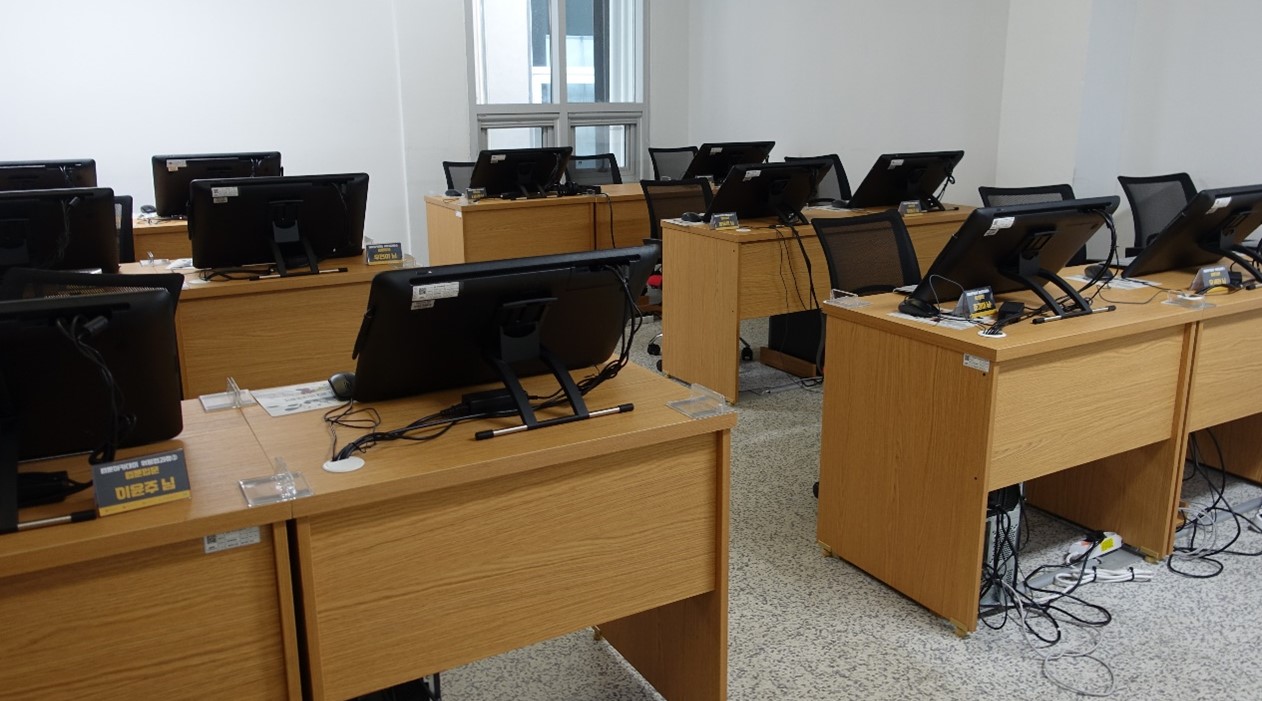이 멋진 공간은 바로 웹툰작가 입주 공간입니다. 제주웹툰캠퍼스 소속의 작가님들이 바로 이곳에서 웹툰 작업을 진행하는데요, 타블렛은 웹툰과 떼려야 뗄 수 없는 만큼 제주웹툰캠퍼스에도 다양한 종류의 와콤 액정타블렛과 펜타블렛이 설치되어 있어요. 웹툰 제작에 관심 있는 지망생은 물론이고 현역 작가들도 와콤 제품을 가장 선호하기 때문에, 입주 공간에는 와콤 신티크프로24 15대를 도입했습니다.