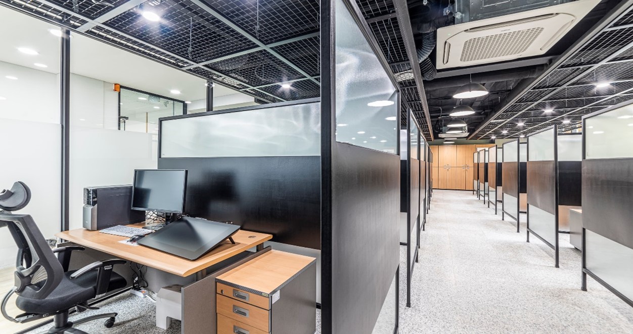 이 멋진 공간은 바로 웹툰작가 입주 공간입니다. 제주웹툰캠퍼스 소속의 작가님들이 바로 이곳에서 웹툰 작업을 진행하는데요, 타블렛은 웹툰과 떼려야 뗄 수 없는 만큼 제주웹툰캠퍼스에도 다양한 종류의 와콤 액정타블렛과 펜타블렛이 설치되어 있어요. 웹툰 제작에 관심 있는 지망생은 물론이고 현역 작가들도 와콤 제품을 가장 선호하기 때문에, 입주 공간에는 와콤 신티크프로24 15대를 도입했습니다.