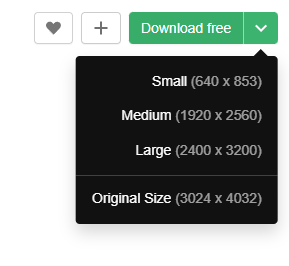 게다가 원하는 사이즈를 지정해서 받을 수도 있어요. 다운로드 버튼을 누르면 기본적으로 original size로 저장되지만, 용량과 크기가 큰 원본사진을 굳이 받을 필요가 없다면 small, medium, large의 세 가지 사이즈 중에서 선택할 수 있습니다.