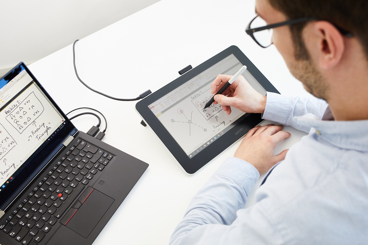 와콤 타블렛의 여러 모델이 디지털 교육 환경에서 사용되지만, 그 중에서도 주로 활용되는 모델은 와콤 원, 인튜어스, 신티크16 등입니다. 그 중에서도 와콤 원은 화면 위에 바로 필기가 가능해 누구나 쉽게 직관적으로 사용할 수 있다는 장점이 있지요. 타블렛을 처음 접하는 학생들도 무리없이 사용할 수 있어서 적응하기 좋아요. PPT, 영상, 워드 파일 등 수업 자료 위에 판서가 가능하기 때문에, 교육용 타블렛으로 인기를 얻고 있는 제품입니다. 펜타블렛 인튜어스는 작고 가벼운 무게로 휴대성이 뛰어난 타블렛으로, PC와 연결해 디지털 펜으로 판서하여 수업을 진행하거나 들을 수 있습니다.